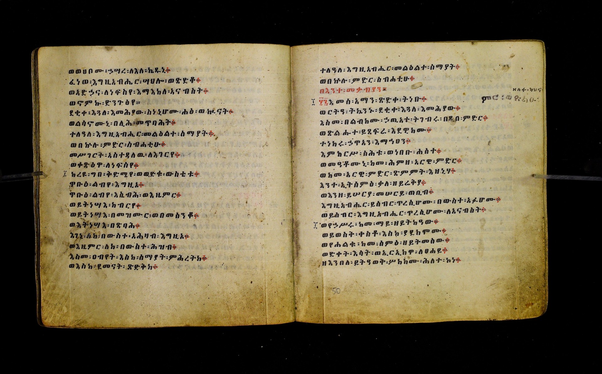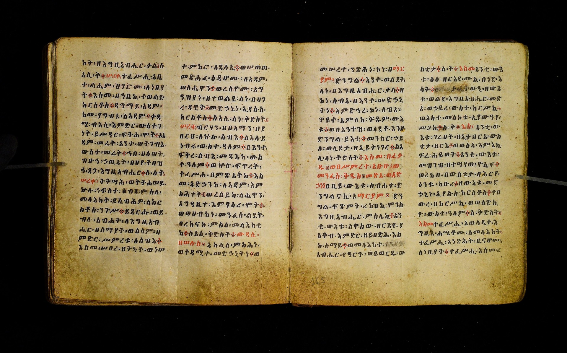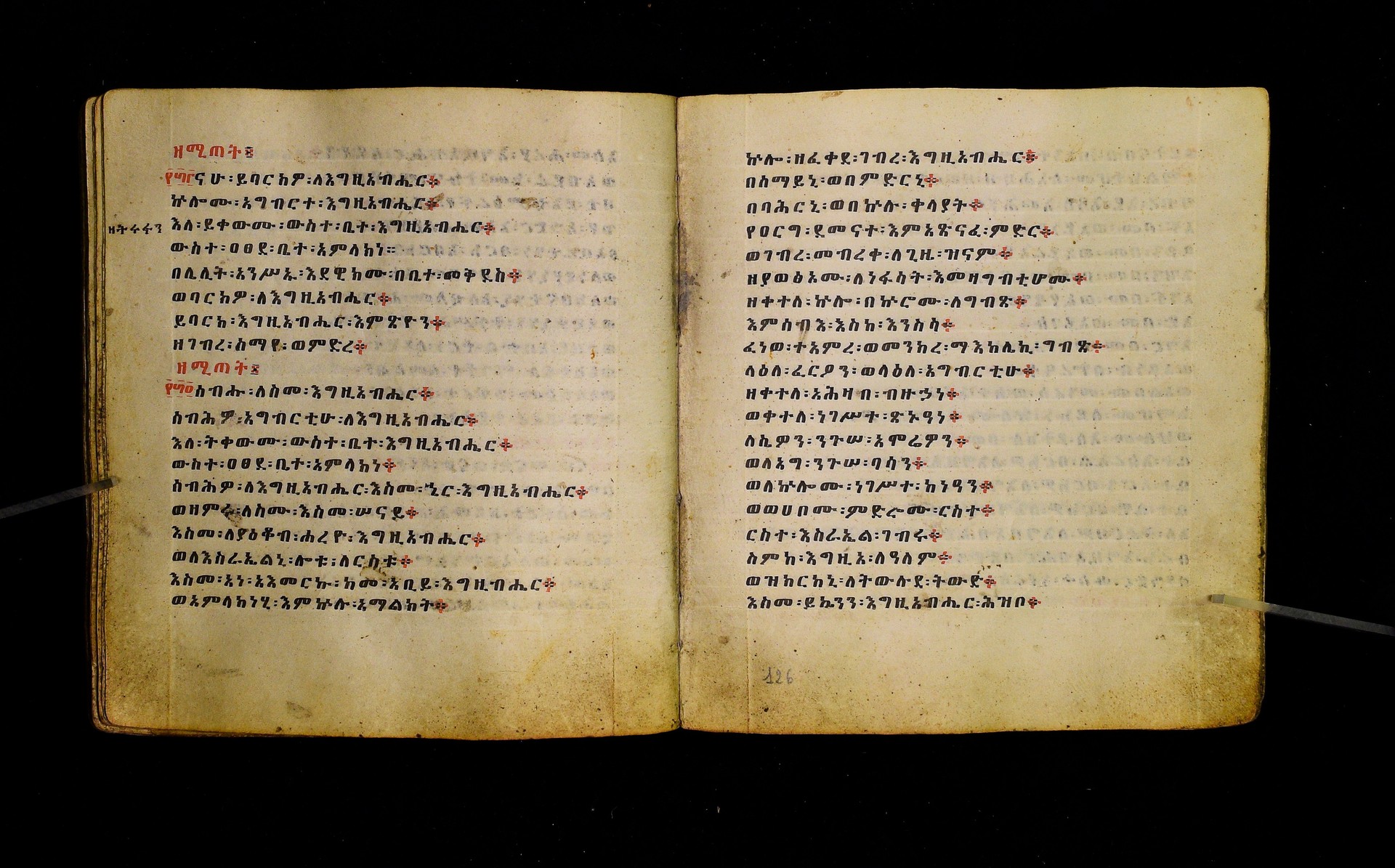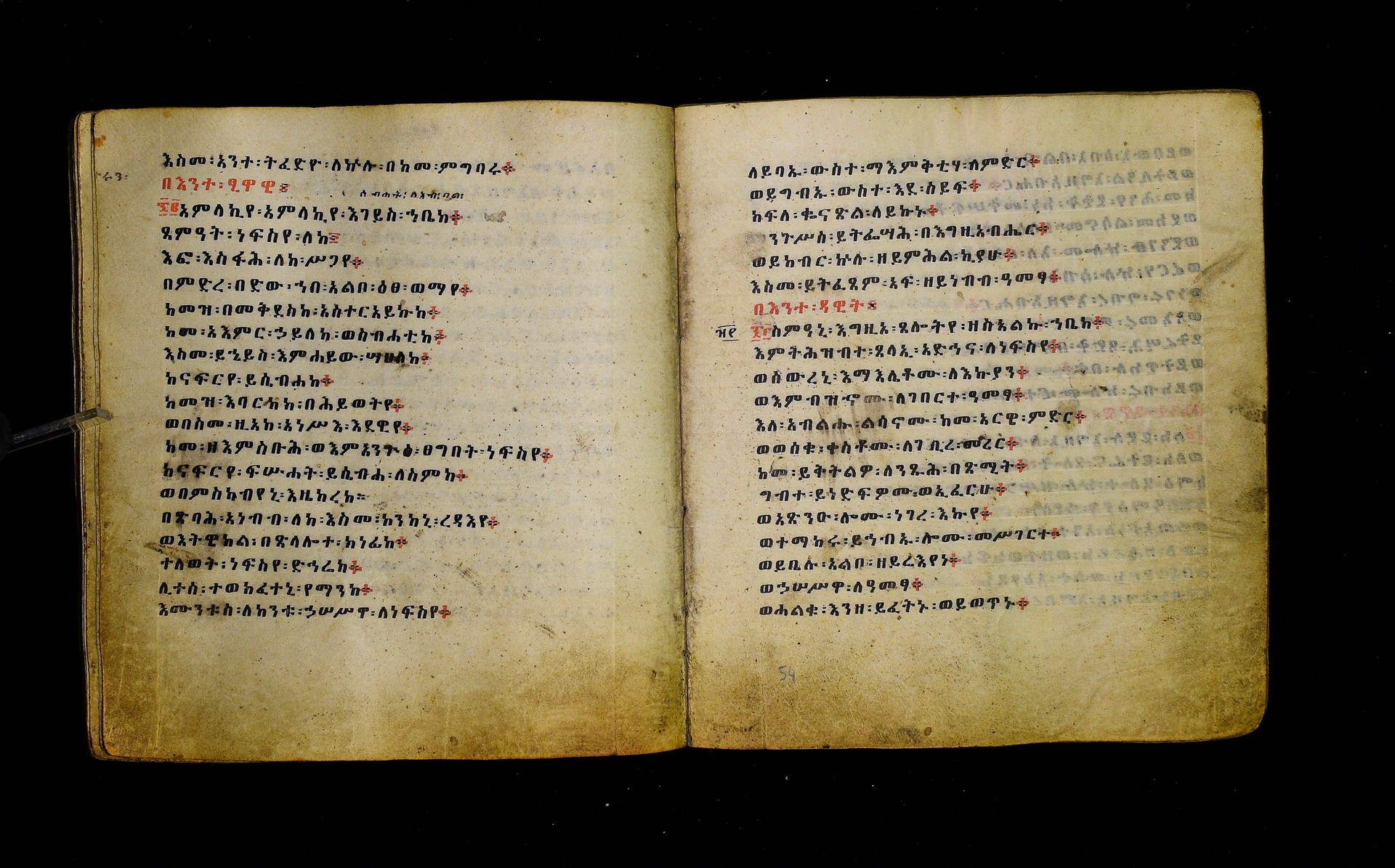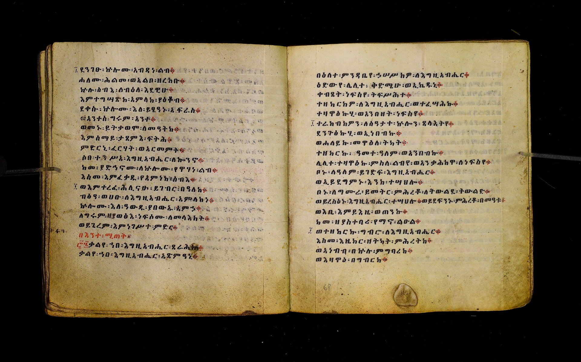 1. F. 2ra–vb: prayer to God, written on two columns in a fine handwriting. Incipit: እገይስ፡ ኀቤከ፡ አምላኪየ፡ አንተ፡ ኩነኒ፡ ረዳእየ፡ ወኩነኒ፡ ምስካይየ። ፀወንየ፡ ወኃይልየ፡ መድኃኒተ፡ ነፍስየ፡ አምላኪየ፡ ወኪያከ፡ ተወከልኩ። ኪያከ፡ ተወከልኩ፡ ኀቤከ፡ ተማኅፀንኩ፡ ኢትግድፈኒ፡ ለዝሉፉ፡ ወኢትርስአኒ፡ በምሕረትከ።. The names of Wäldä Iyäsus e Kidanä Mar[yam] are mentioned on f. 2vb. 2. F. 11r: short mäwaśǝʾt-hymn: ተፈሣሕኩ፡እስመ፡ ይቤሉኒ፡ ቤተ፡ ቤተ፡ እግዚአብሔር፡ ነሐውር። ሶበ፡ ይነቅህ፡ ካህን፡ ተከሥተ፡ ብርሃን፡ ለዓለም፡ ወተቀደሰት፡ ቤተ፡ ክርስቲያን፡ በክ፡ ወበስብሐት፡. The hymn is separated from the main text by a black vertical line and is provided with interlineal musical notation. 3. F. 163va–b: hymn entitled Mäḥaränä ab, “The Father had mercy on us”. The hymn is written in a small script and is provided with interlineal musical notation. Incipit: መሐረነ፡ አብ፡ ሃሌ፡ ሉያ፡ ተሣሃለነ፡ ወልድ፡ ሃሌ፡ ሉያ፡ መንፈስ፡ ቅዱስ፡ መሐሪ፡ ተዘከረነ፡ በሣህልከ። ለከ፡ ንፌኑ፡ ስብሐተ፡ ወለከ፡ ነዓርግ፡ አኰቴተ። መሐረነ፡ መሐሪ፡ ኃጢአተነ፡ አስተስሪ። 4. Ff. 178va–179ra: Ethiopian syllabary, written in a recent and untrained hand and followed by a short text in Amharic and Gǝʿǝz, written in the same hand. Incipit: አሊ፡ ጀረ፡ አመተ፡ ጀርጀረ፡ ነጋሢ፡ ምኒልክ፡ ቍርቍራ፡ ስመ፡ ጥርስ፡ አጥርሲ፡ አንበሳ፡ ጋማማ፡ ነምር፡ ጥፍራማ፡ ጅብ፡ ደደሳማ. |