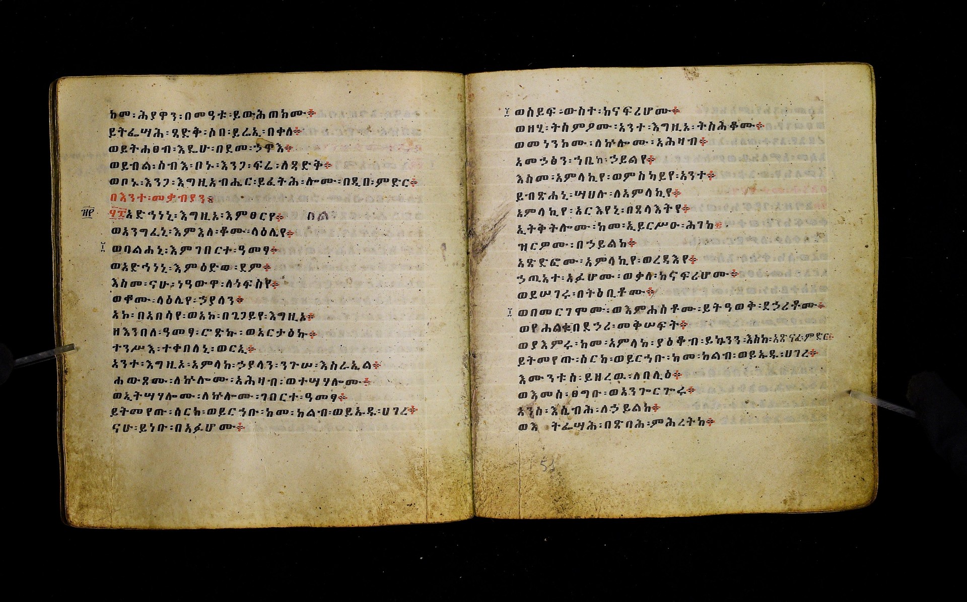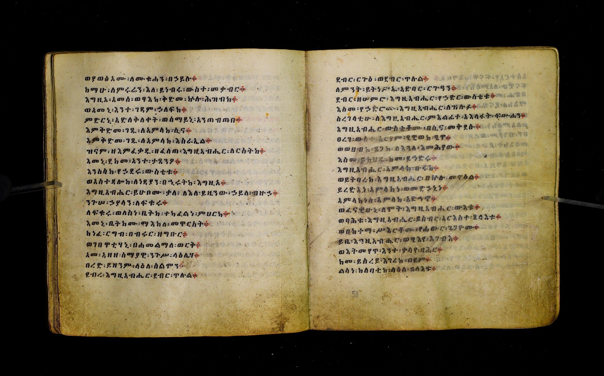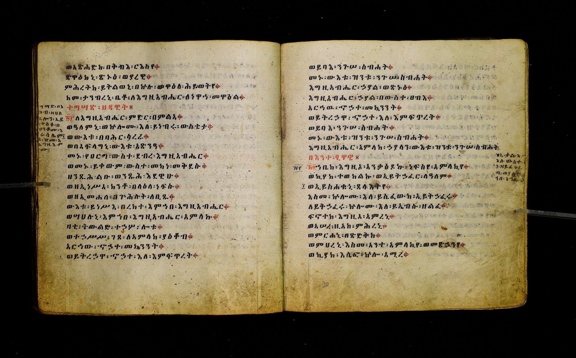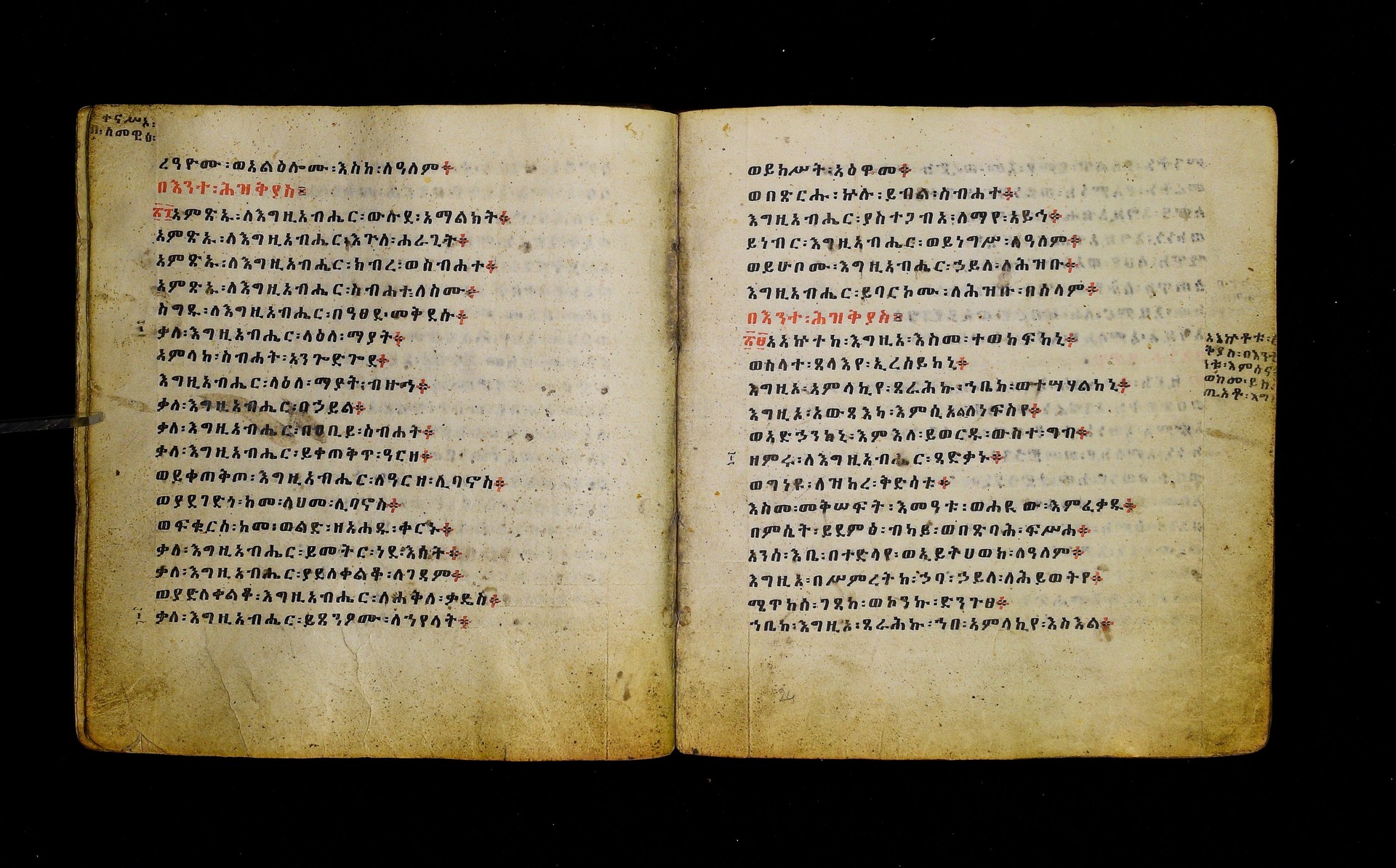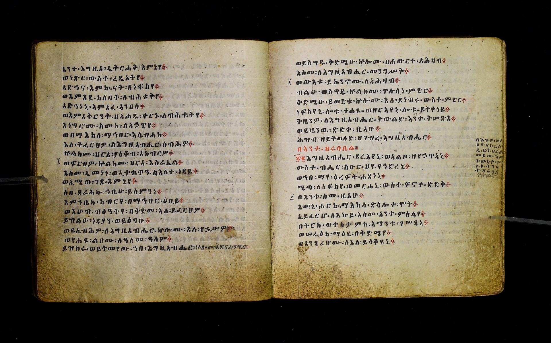 1. F. 2ra–vb: prayer to God, written on two columns in a fine handwriting. Incipit: እገይስ፡ ኀቤከ፡ አምላኪየ፡ አንተ፡ ኩነኒ፡ ረዳእየ፡ ወኩነኒ፡ ምስካይየ። ፀወንየ፡ ወኃይልየ፡ መድኃኒተ፡ ነፍስየ፡ አምላኪየ፡ ወኪያከ፡ ተወከልኩ። ኪያከ፡ ተወከልኩ፡ ኀቤከ፡ ተማኅፀንኩ፡ ኢትግድፈኒ፡ ለዝሉፉ፡ ወኢትርስአኒ፡ በምሕረትከ።. The names of Wäldä Iyäsus e Kidanä Mar[yam] are mentioned on f. 2vb. 2. F. 11r: short mäwaśǝʾt-hymn: ተፈሣሕኩ፡እስመ፡ ይቤሉኒ፡ ቤተ፡ ቤተ፡ እግዚአብሔር፡ ነሐውር። ሶበ፡ ይነቅህ፡ ካህን፡ ተከሥተ፡ ብርሃን፡ ለዓለም፡ ወተቀደሰት፡ ቤተ፡ ክርስቲያን፡ በክ፡ ወበስብሐት፡. The hymn is separated from the main text by a black vertical line and is provided with interlineal musical notation. 3. F. 163va–b: hymn entitled Mäḥaränä ab, “The Father had mercy on us”. The hymn is written in a small script and is provided with interlineal musical notation. Incipit: መሐረነ፡ አብ፡ ሃሌ፡ ሉያ፡ ተሣሃለነ፡ ወልድ፡ ሃሌ፡ ሉያ፡ መንፈስ፡ ቅዱስ፡ መሐሪ፡ ተዘከረነ፡ በሣህልከ። ለከ፡ ንፌኑ፡ ስብሐተ፡ ወለከ፡ ነዓርግ፡ አኰቴተ። መሐረነ፡ መሐሪ፡ ኃጢአተነ፡ አስተስሪ። 4. Ff. 178va–179ra: Ethiopian syllabary, written in a recent and untrained hand and followed by a short text in Amharic and Gǝʿǝz, written in the same hand. Incipit: አሊ፡ ጀረ፡ አመተ፡ ጀርጀረ፡ ነጋሢ፡ ምኒልክ፡ ቍርቍራ፡ ስመ፡ ጥርስ፡ አጥርሲ፡ አንበሳ፡ ጋማማ፡ ነምር፡ ጥፍራማ፡ ጅብ፡ ደደሳማ. |