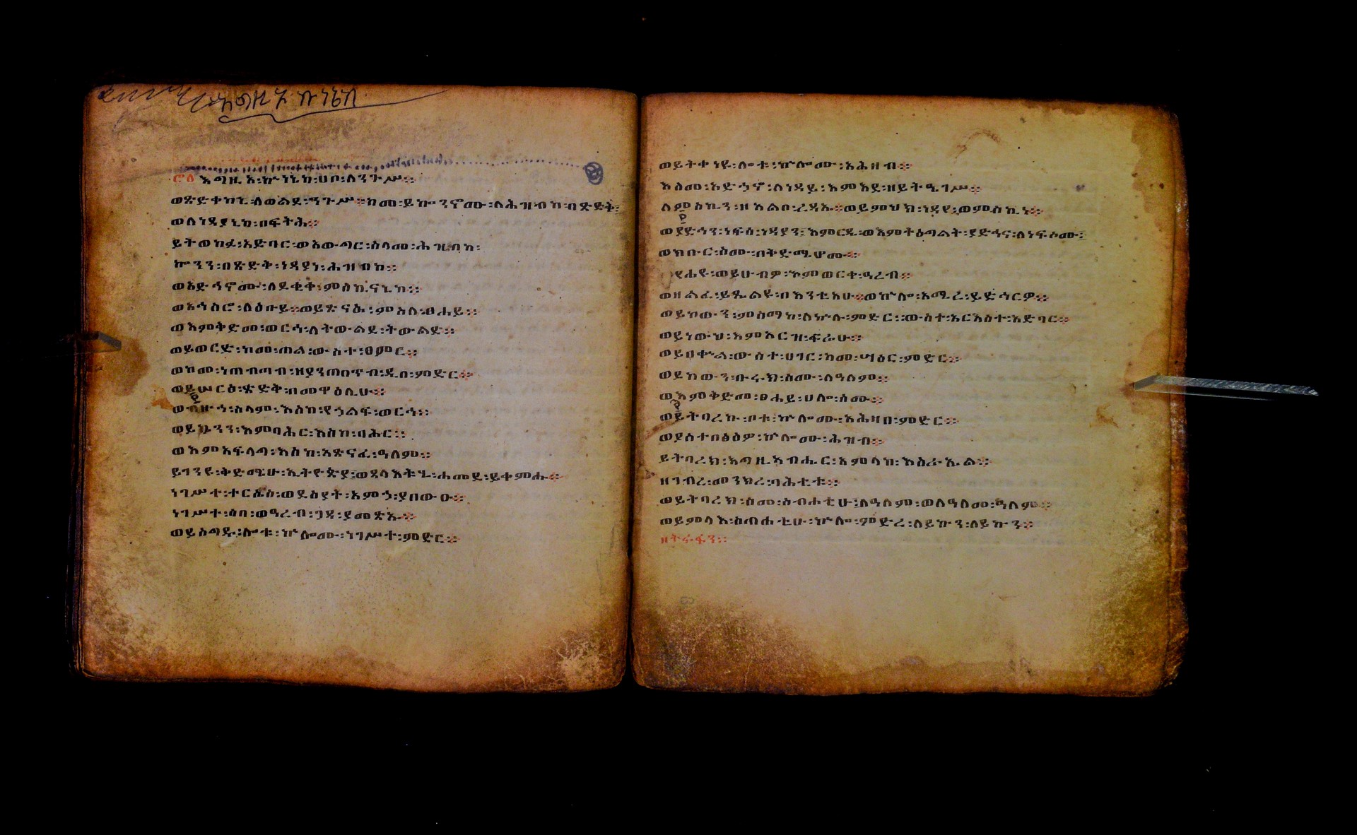 1. F. 124va: note written in a recent hand on a text previously erased. The note is provided with interlineal musical notation and is partly illegible due to faded ink. Incipit: አድባረ[፡] ድሁሀን፡ ይሰመይ[፡] ነፋሳቲሆሙ፡ ለጻድቃን፡ ጻድቃን[፡] ውሉደ[፡] ብር[ሃ]ን፡ እለ[፡] ሎሙ[፡] ሕግ፡ ወሎሙሰ፡. |