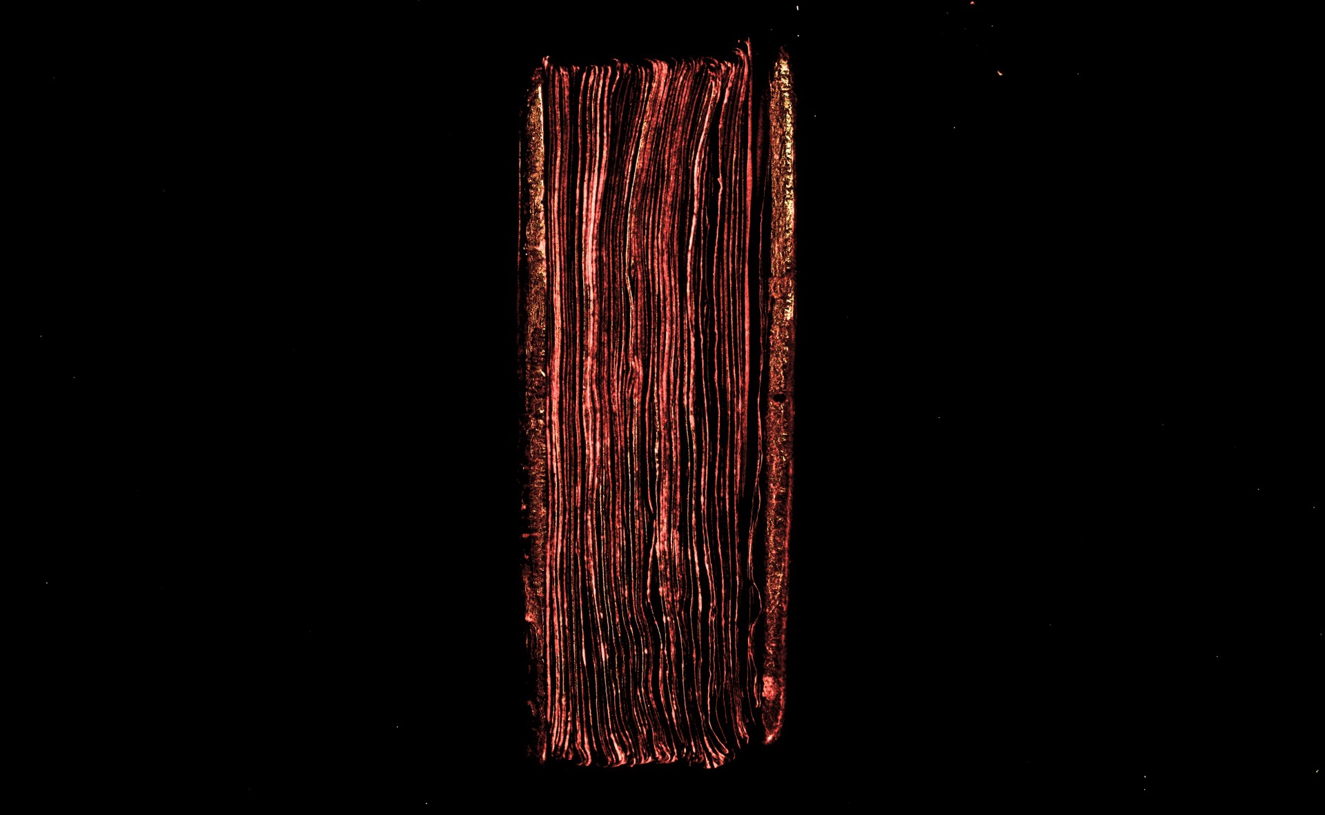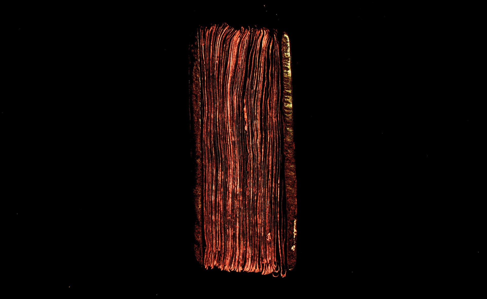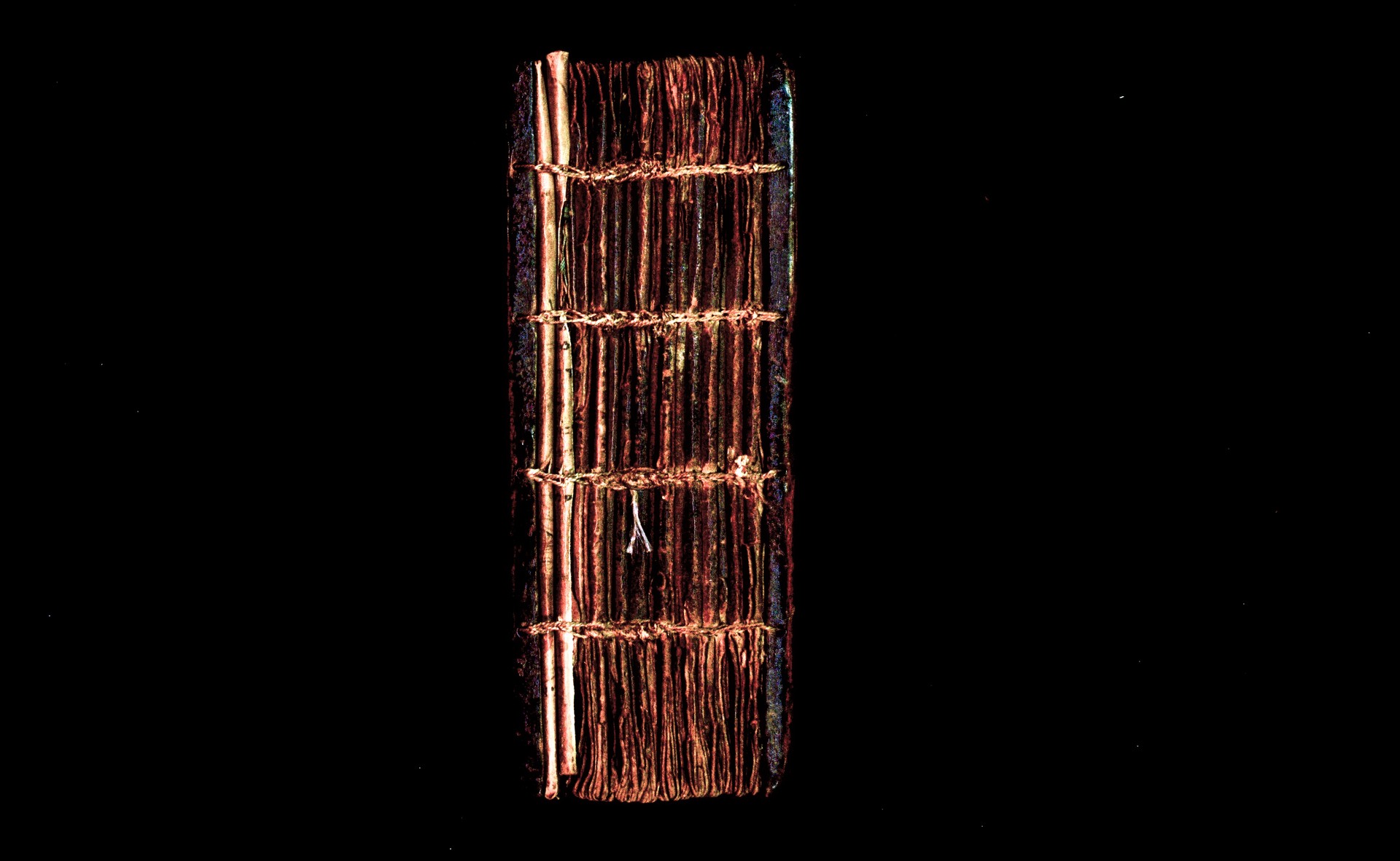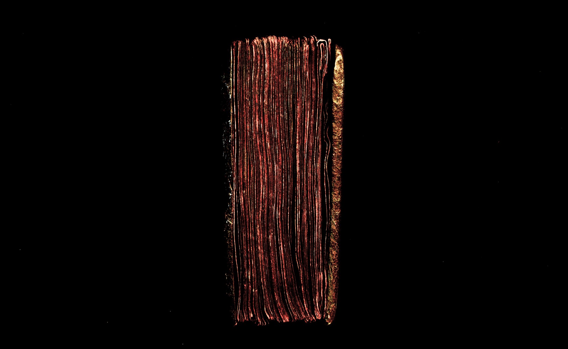 Blind ruling, from the flesh side to the hair side. Lines are written above the ruling. |