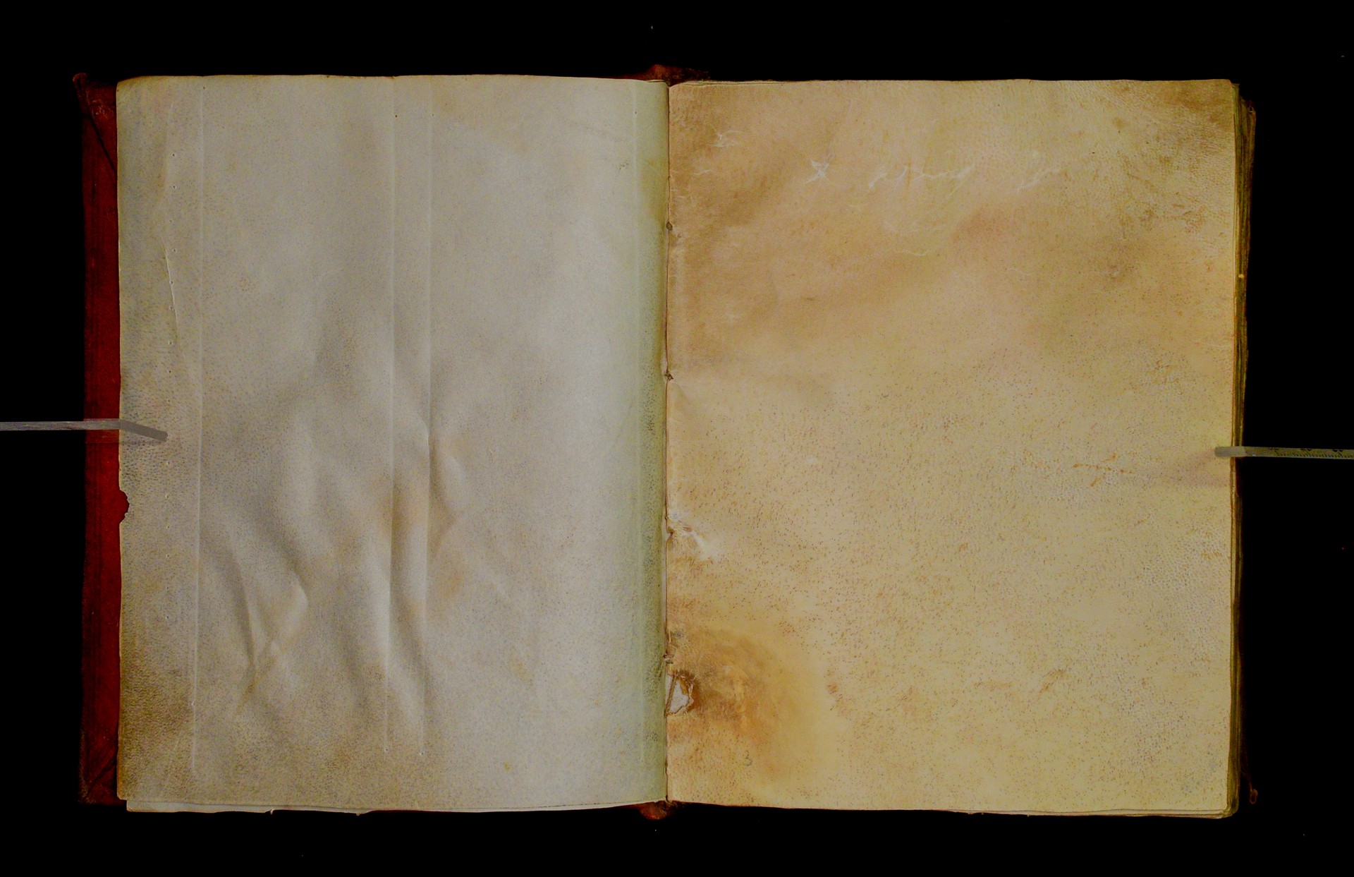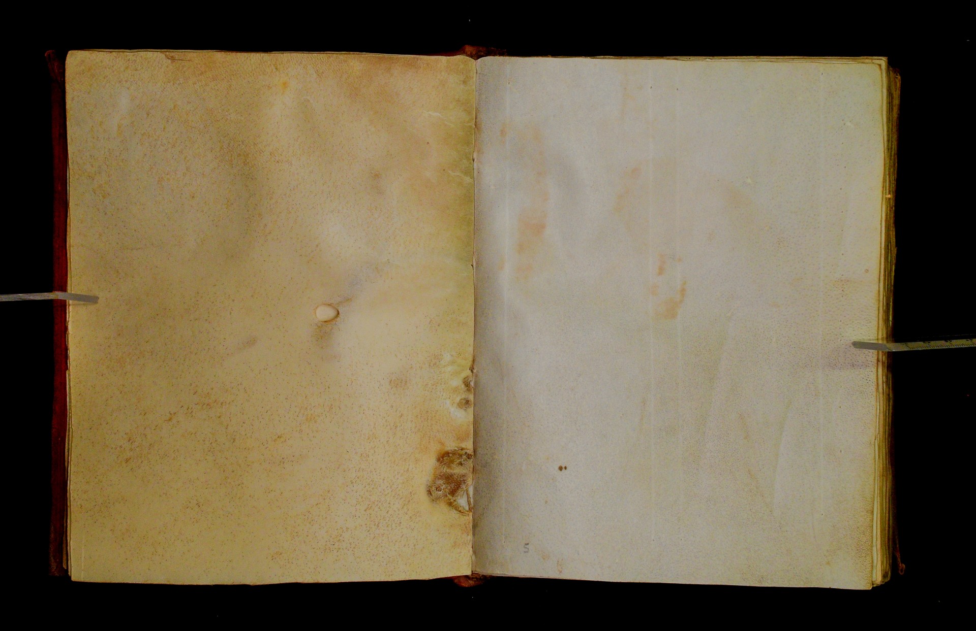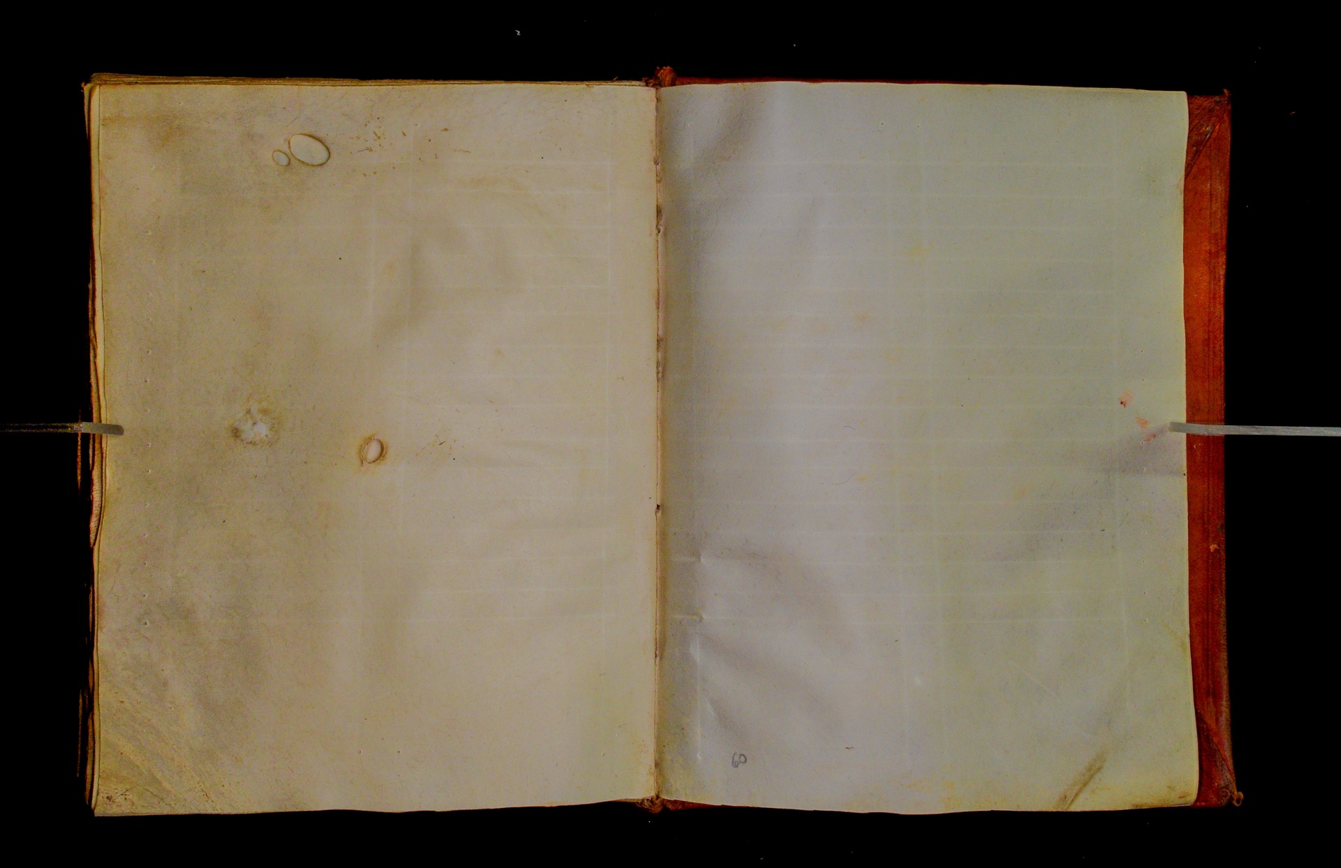 Blind ruling, from outside to inside. Lines are written above the ruling. |