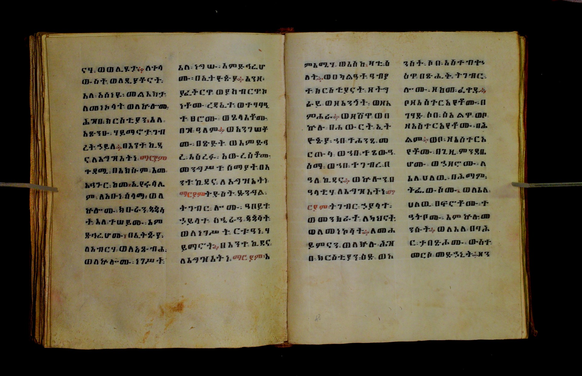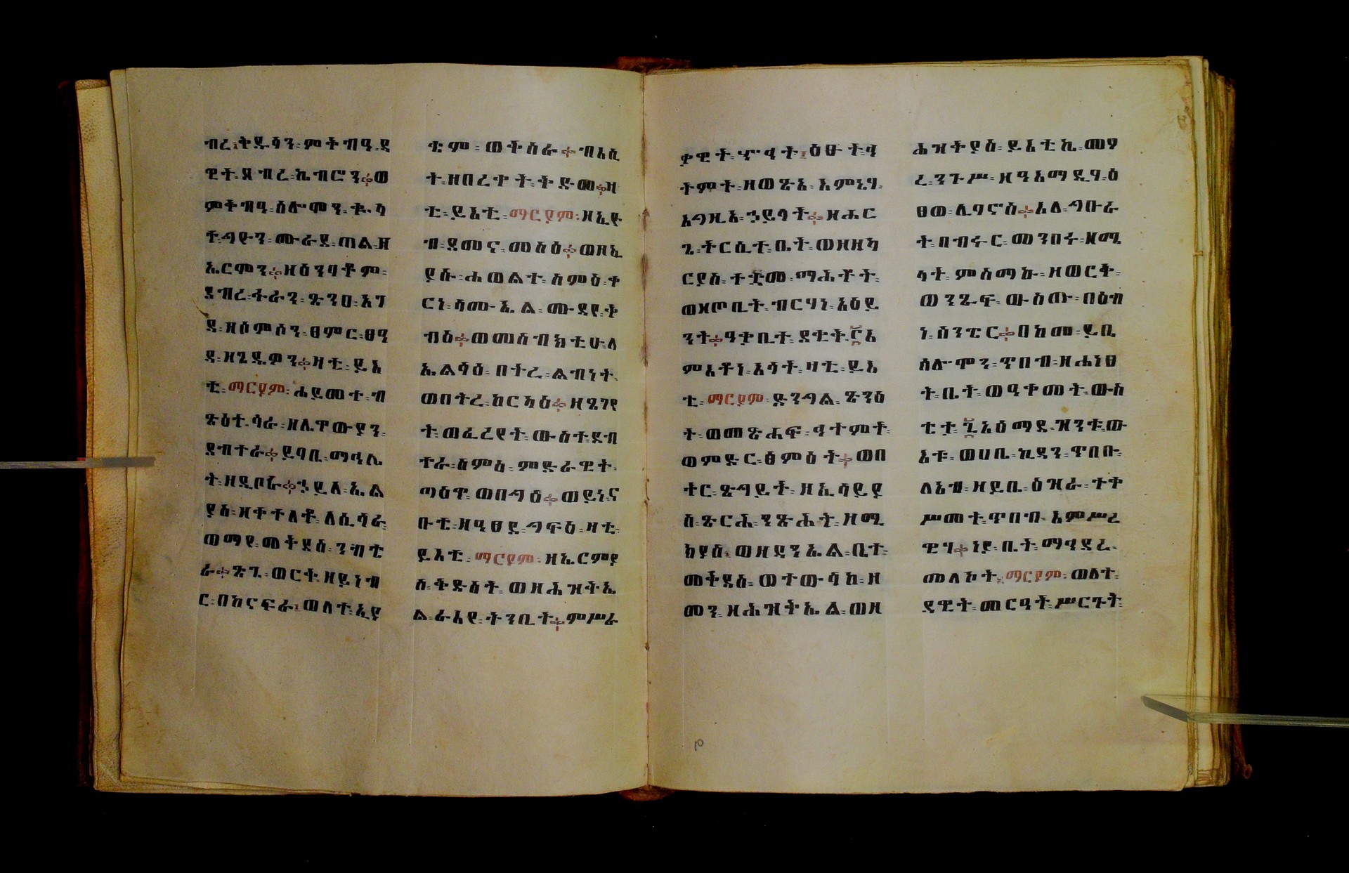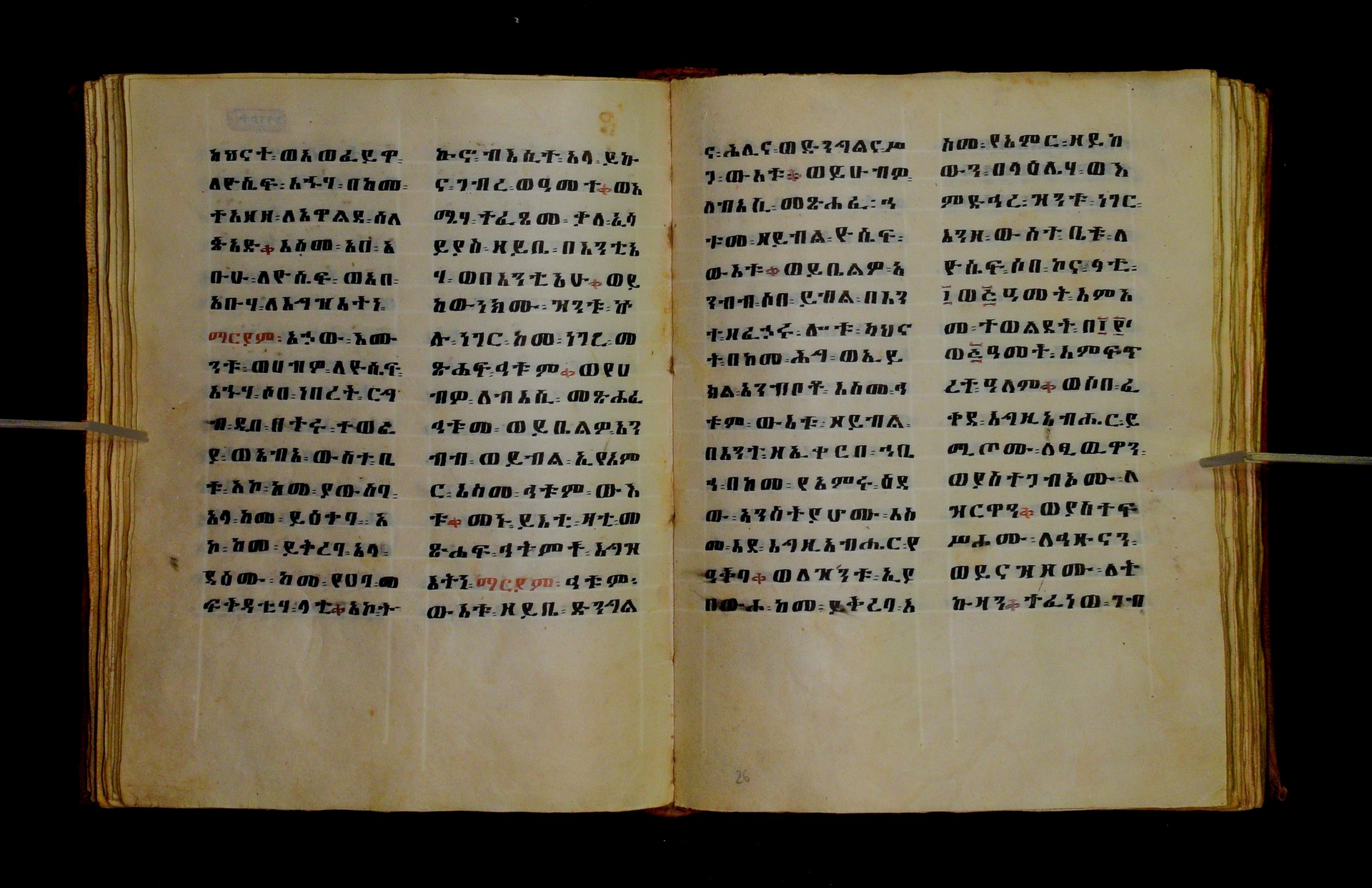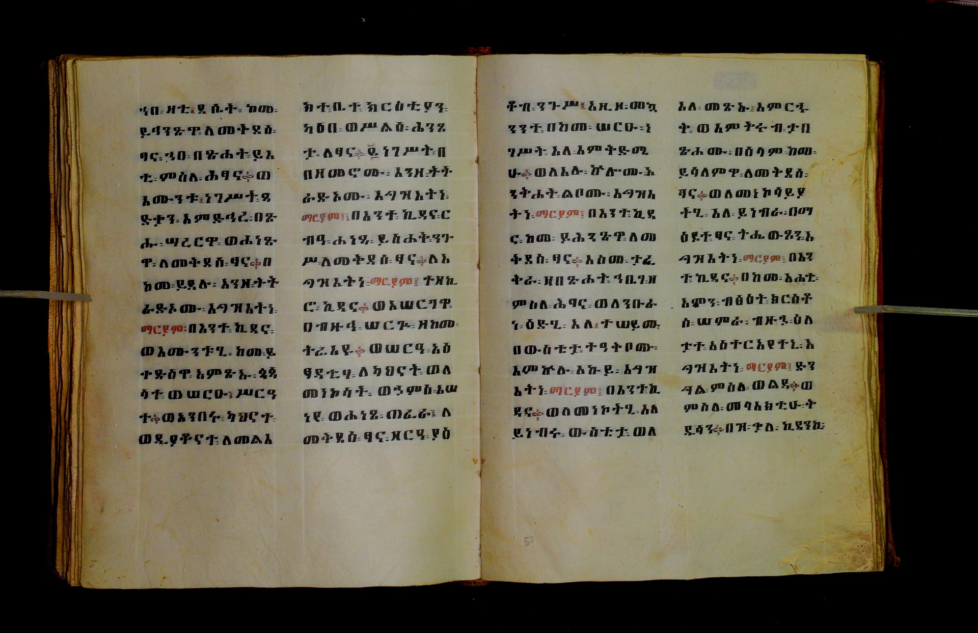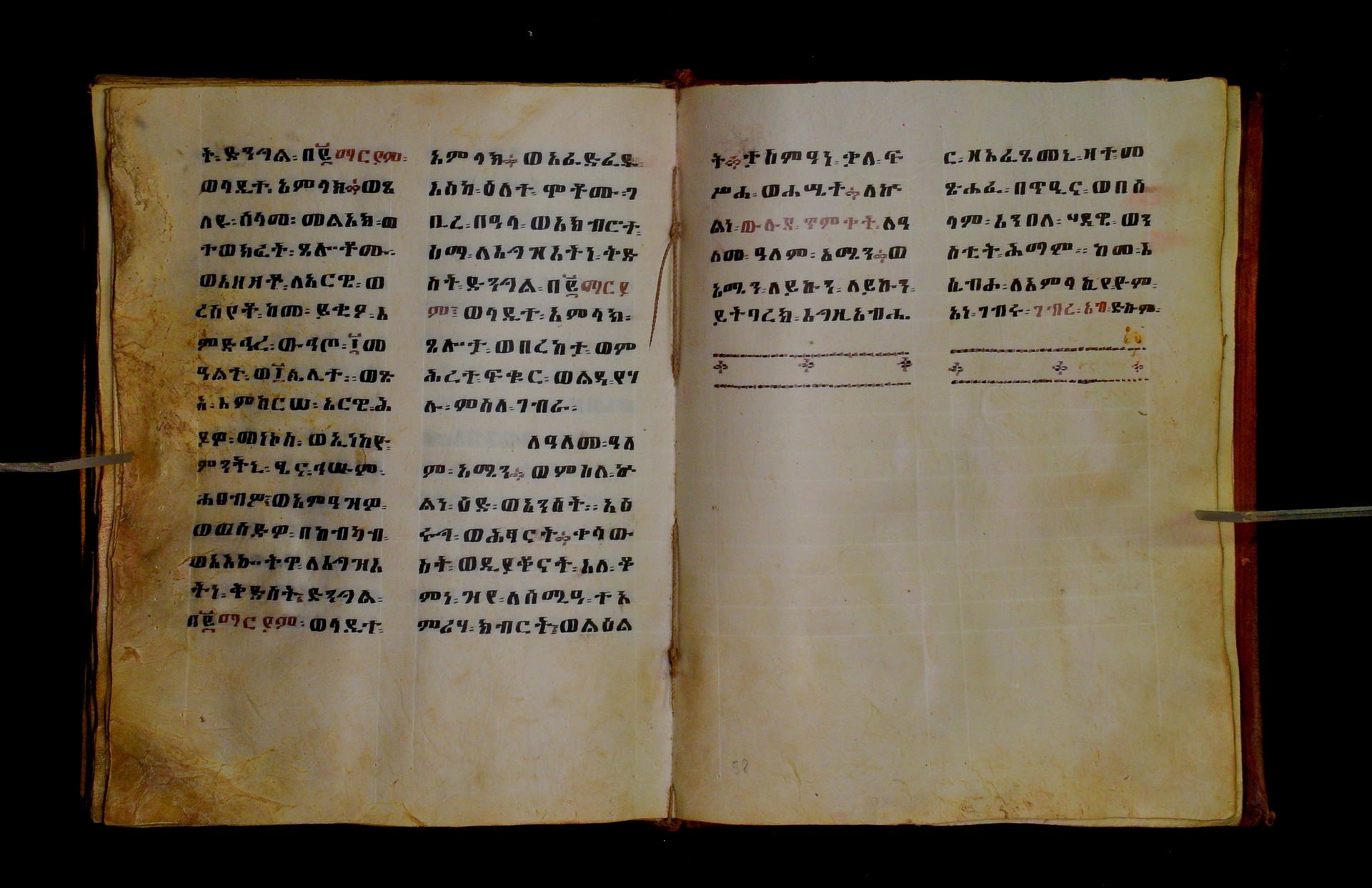 Heading: ተአምሪሃ፡ ለእግዝእትነ፡ ቅድስት፡ ድንግል፡ በ፪ማርያም፡ ወላዲተ፡ አምላክ፡ ጸሎታ፡ ወበረከታ፡ የሃሉ፡ ምስለ፡ ዓመታ፡ <lac.> (56vb) <lac.> ለዓ፡ ዓለ፡ አሜን። Incipit: ወሀሎ፡ ፩መነኮስ፡ በደብረ፡ ጢሞና፡ ዘስሙ፡ ኤፍሬም፡ አሥጋሬ፡ ዓሣ፡ ለመነኮሳተ፡ ደብር። ወይገብር፡ በዓለ፡ ዚአሃ፡ ዘነሥአት፡ ኪዳነ፡ ምሕረት፡ እምኀበ፡ ወልድሰ፡ እግዝእትነ፡ ቅድስት፡ ድንግል፡ በ፪ማርያም፡ Subscription: ይትባረክ፡ እግዚአብሔ(58rb)ር፡ ዘአፈጸመኒ፡ ዛተ፡ መጽሐፈ፡ በጥዒና፡ ወበሰላም፡ እንበለ፡ ደዌ፡ ወንስቲት፡ ሕማም። ከመ፡ እሴብሖ፡ ለአምላኪየ፡ ዮም፡ አነ፡ ገብሩ፡ ገብረ፡ አብ፡ ድኩም፡ |