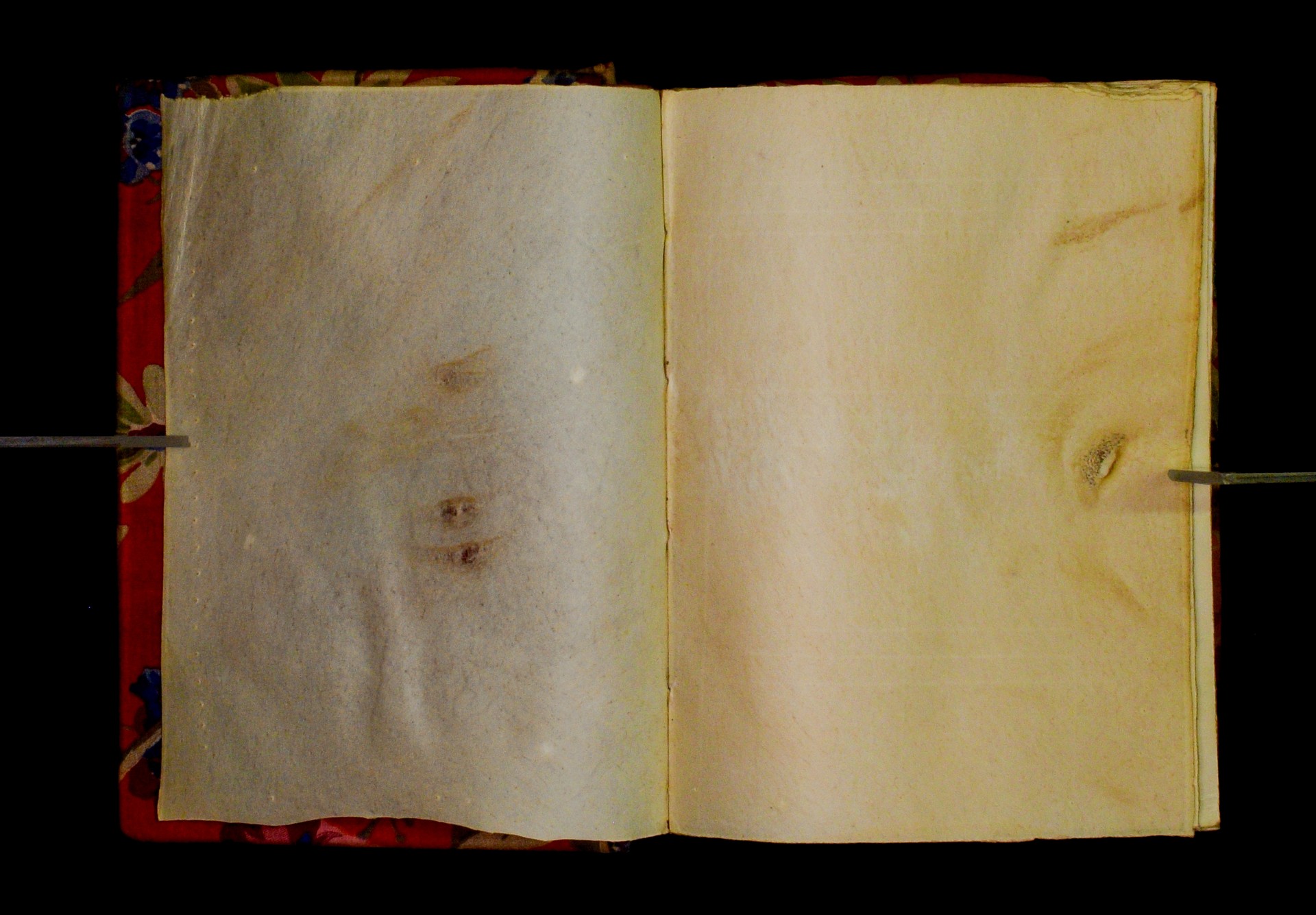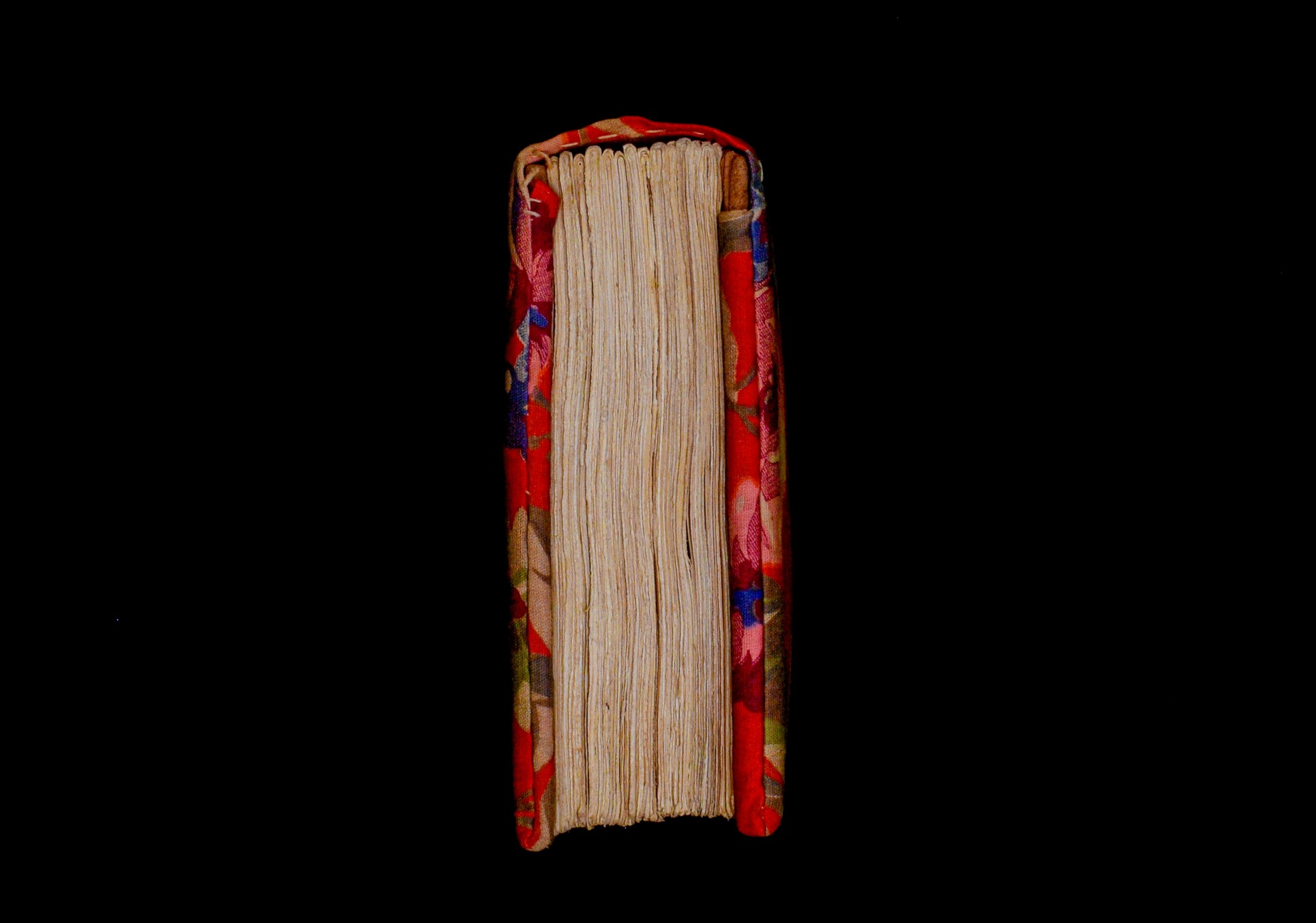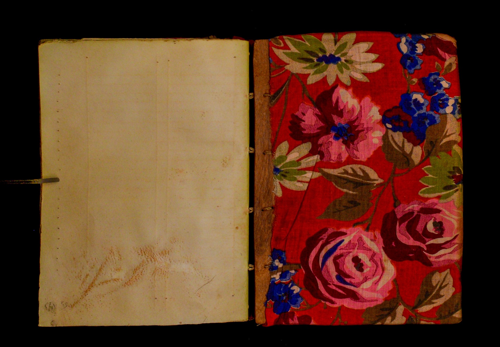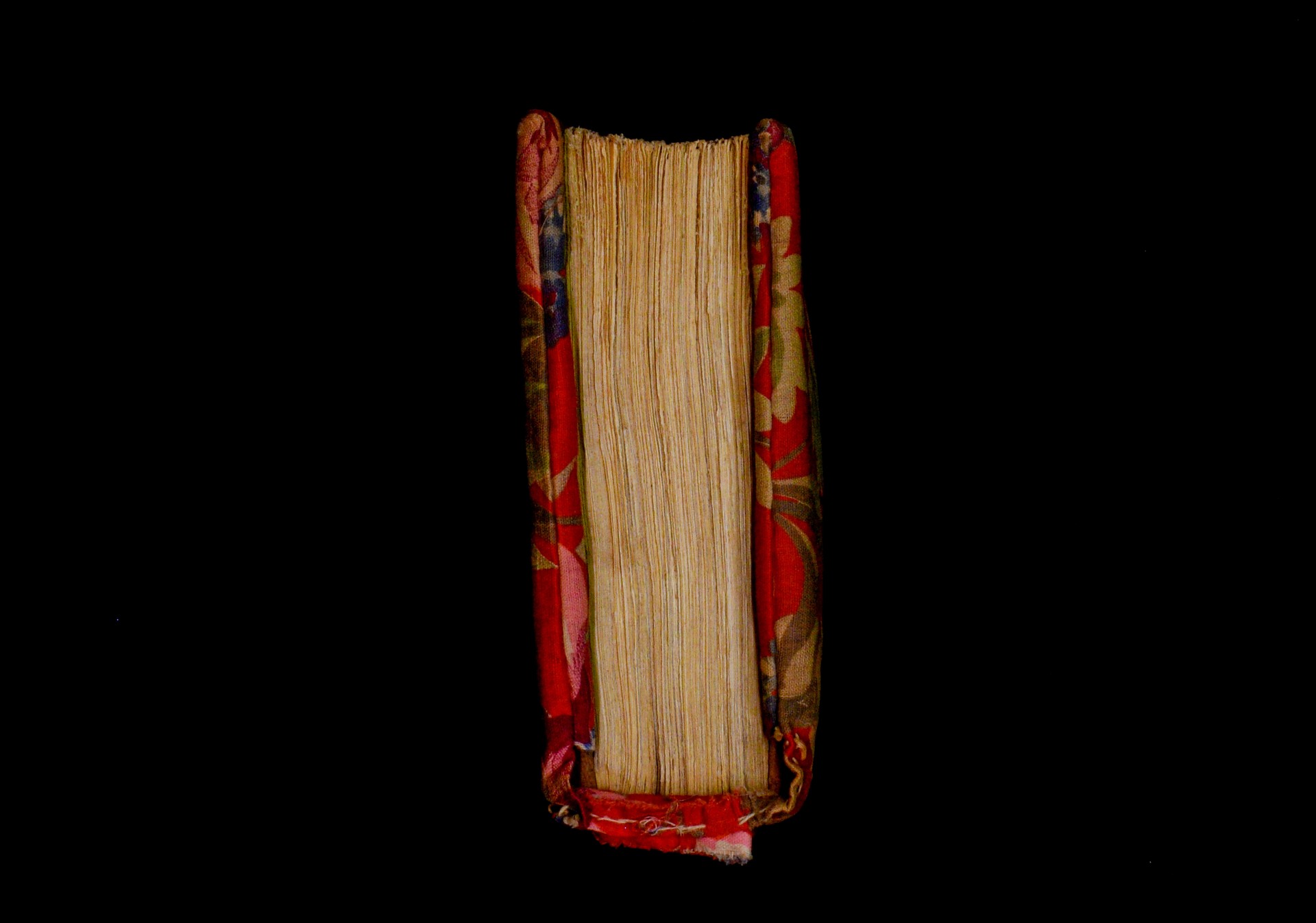 Two wooden boards. The spine is uncovered. Four sewing stations. |