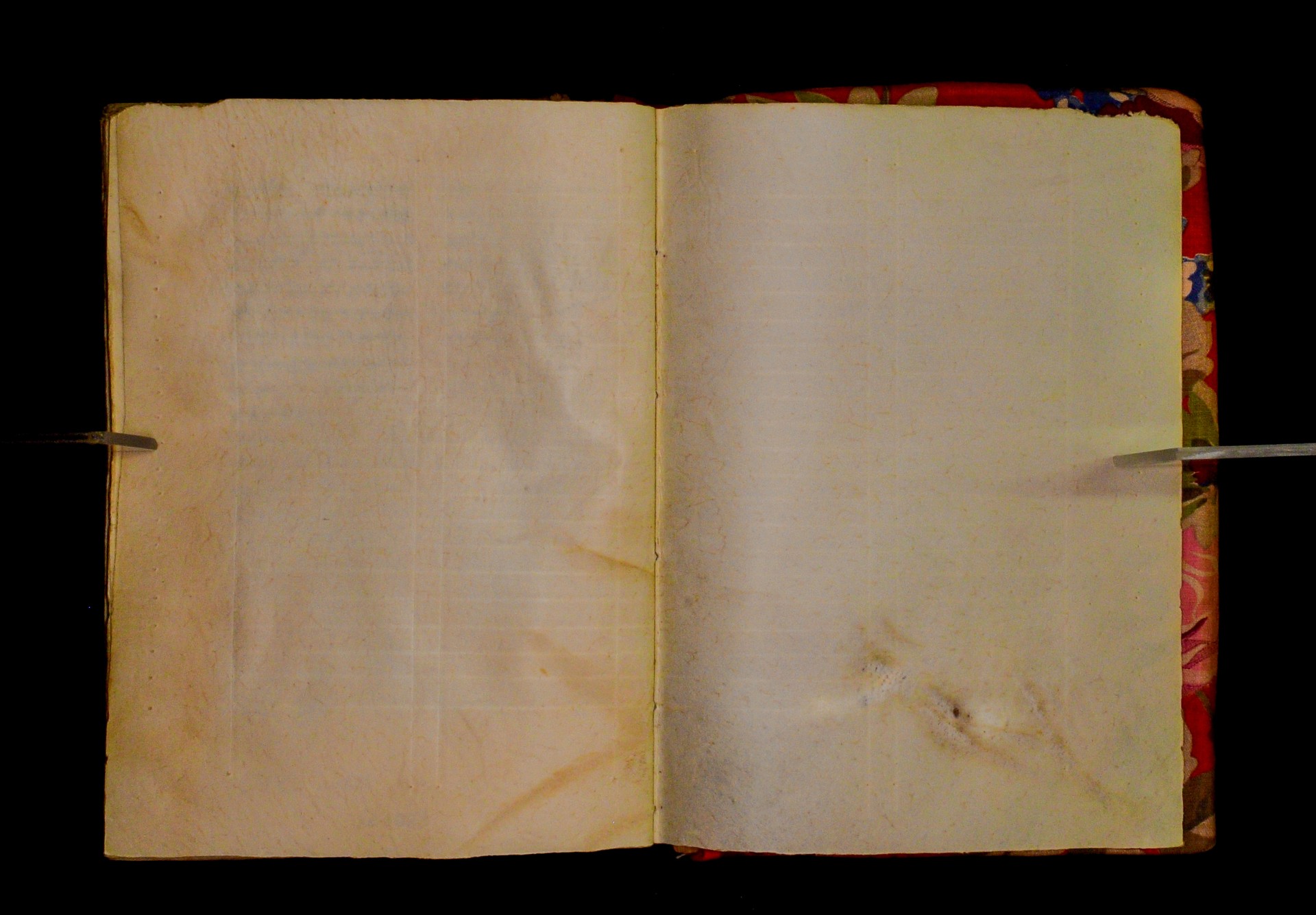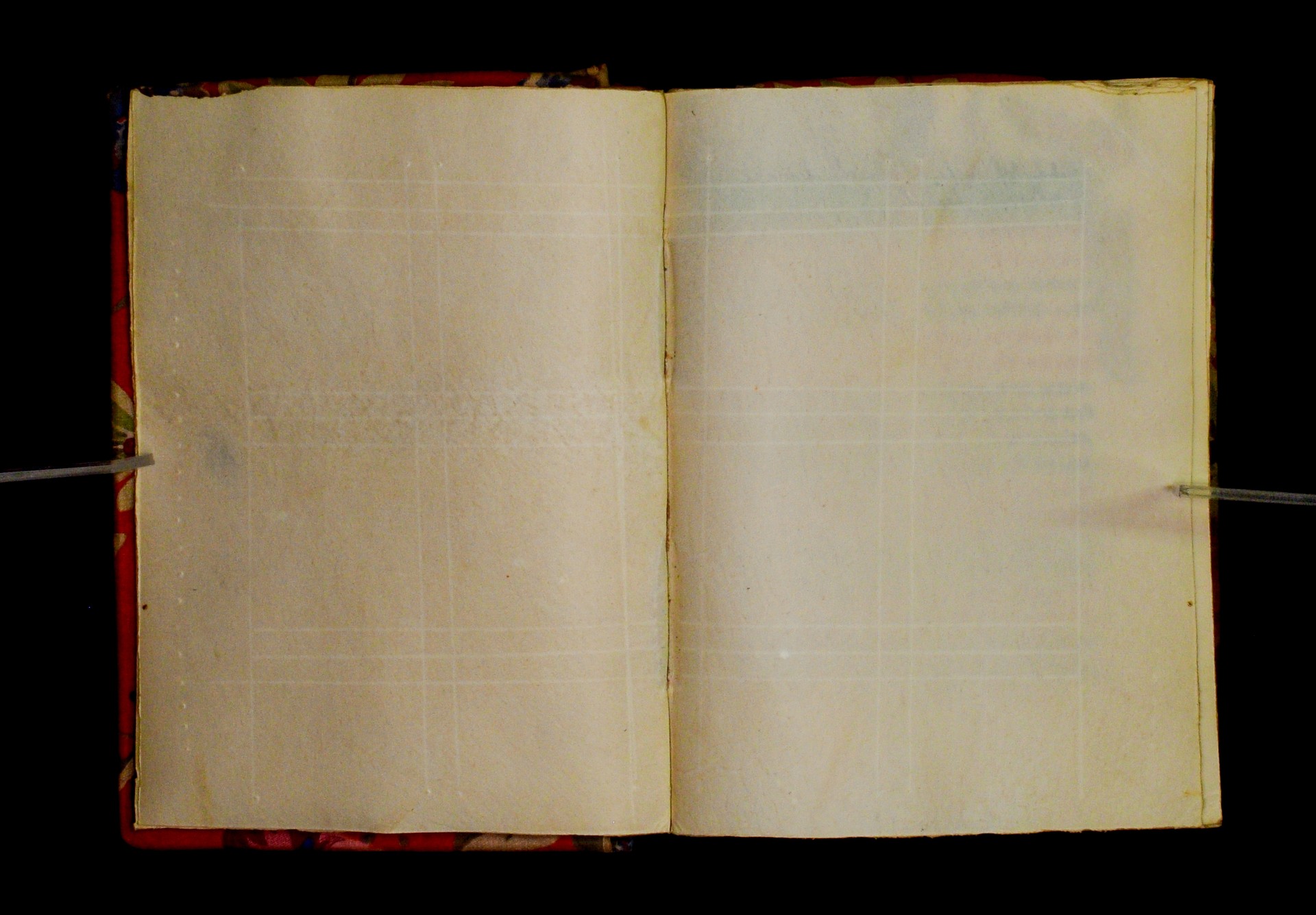 Blind ruling, from inside to outside. Lines are written above the ruling. |