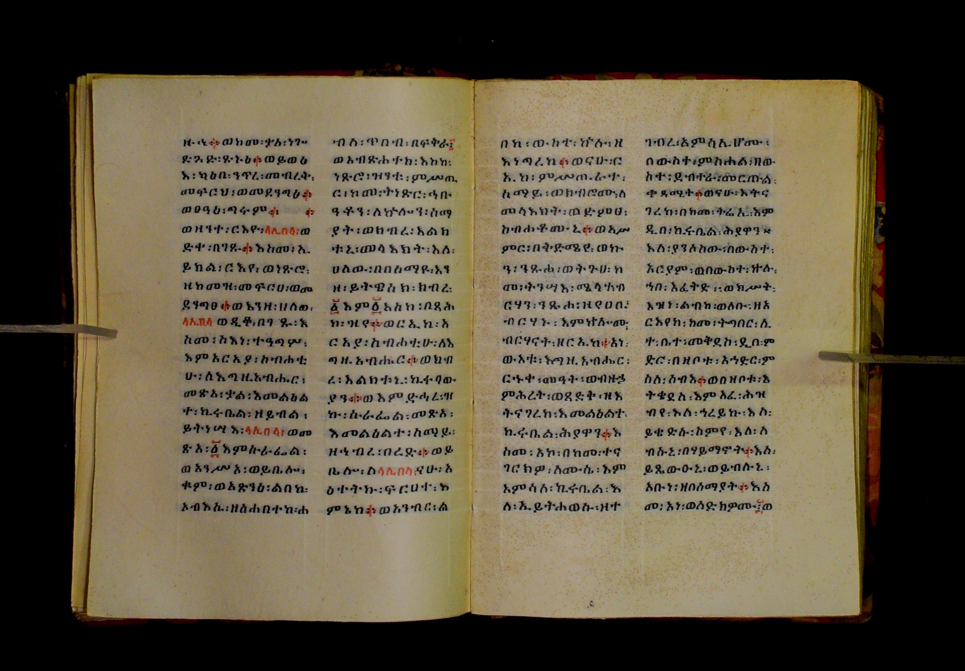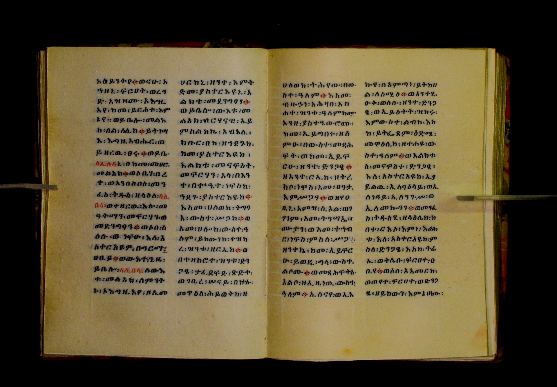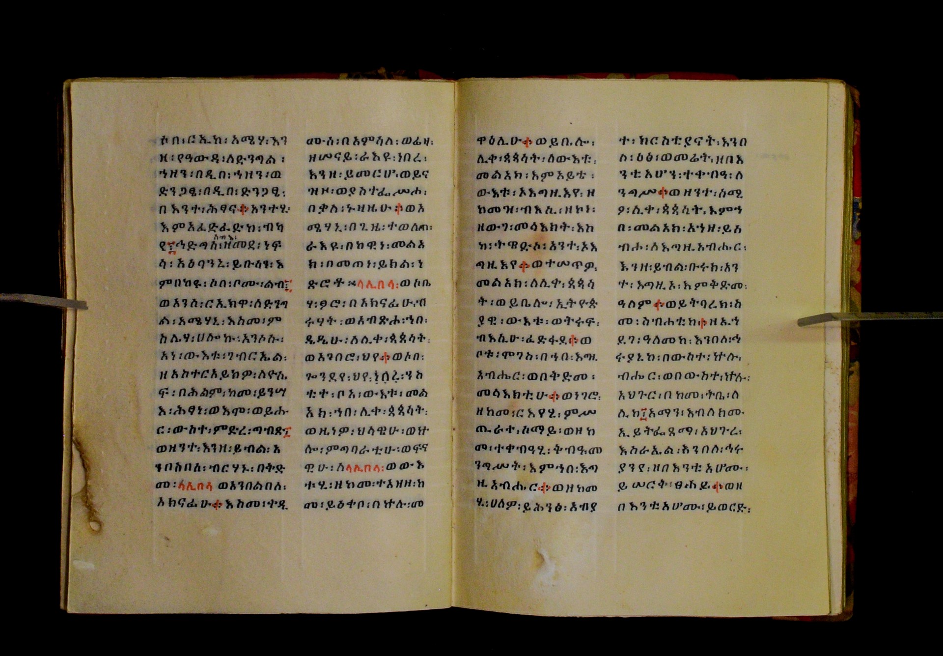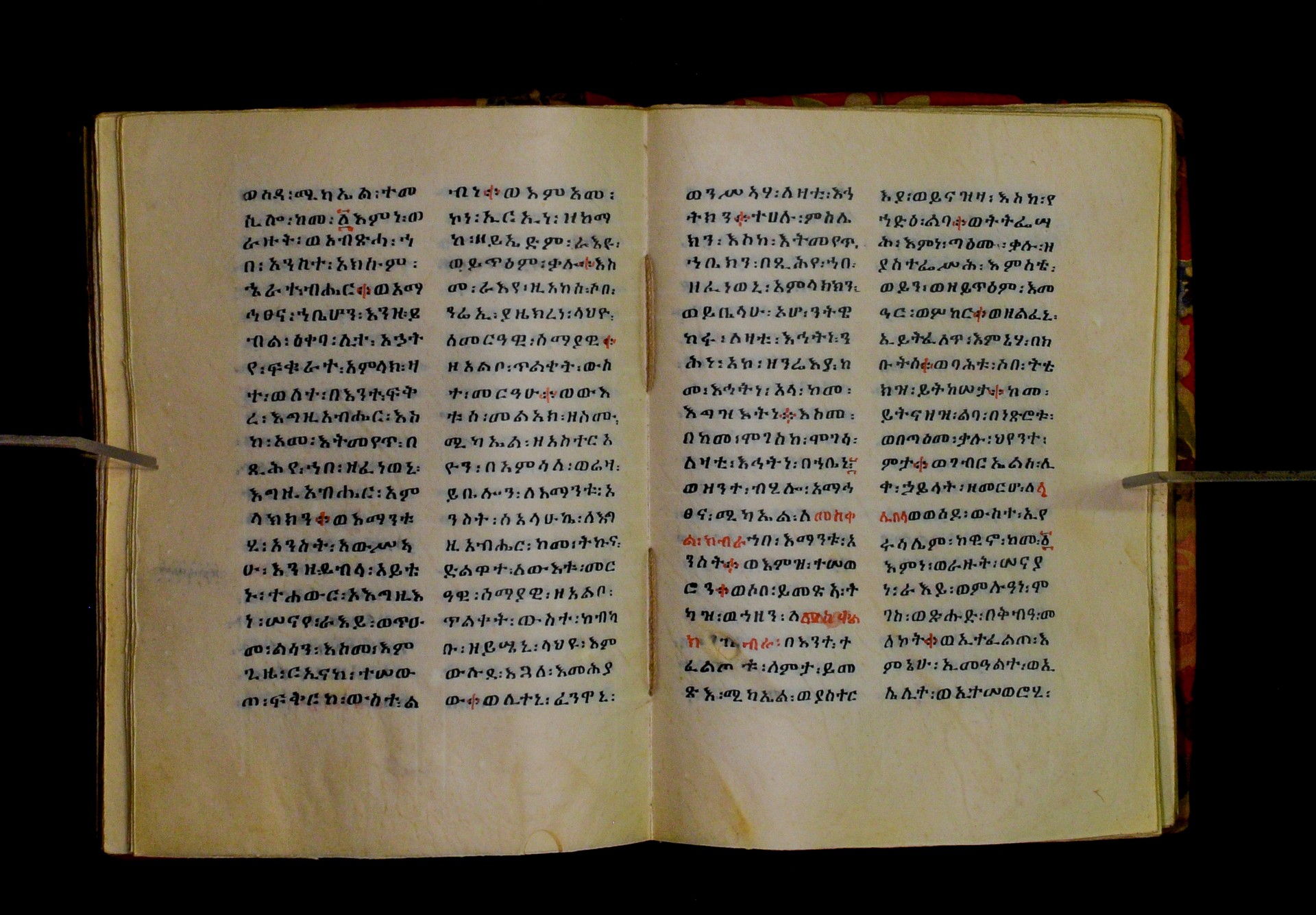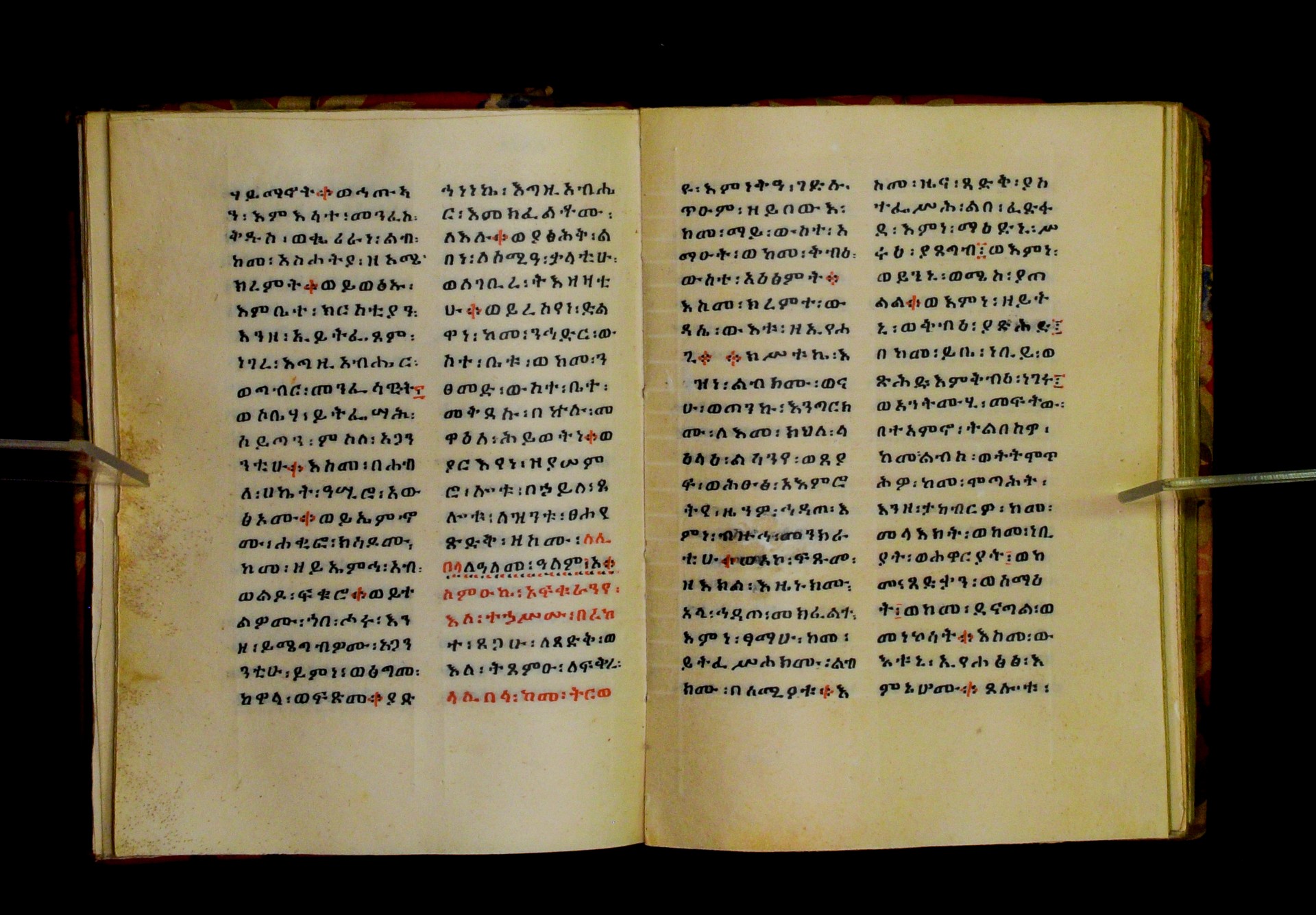 Indicated in black and red ink on the upper margin of the first folio of each quire: ff. 1r (፩,), 11r (፪), 21r (፫), 31r (፬), 41r (፭), 51r (፮), 61r (፯), 71r (፰), 81r (፱), 91r (፲), 101r (፲፩,), 111r (፲፪), 121r (፲፫). |