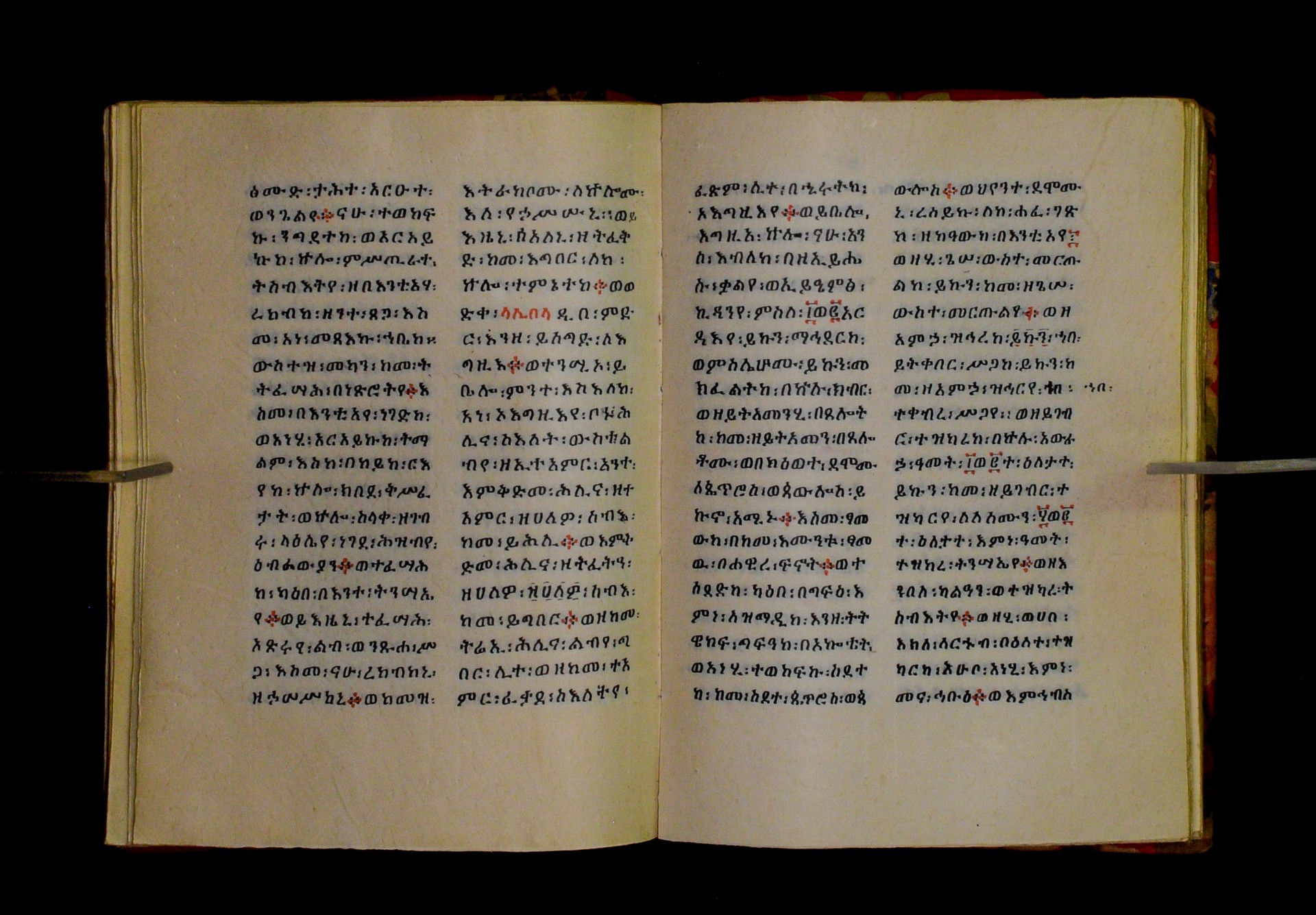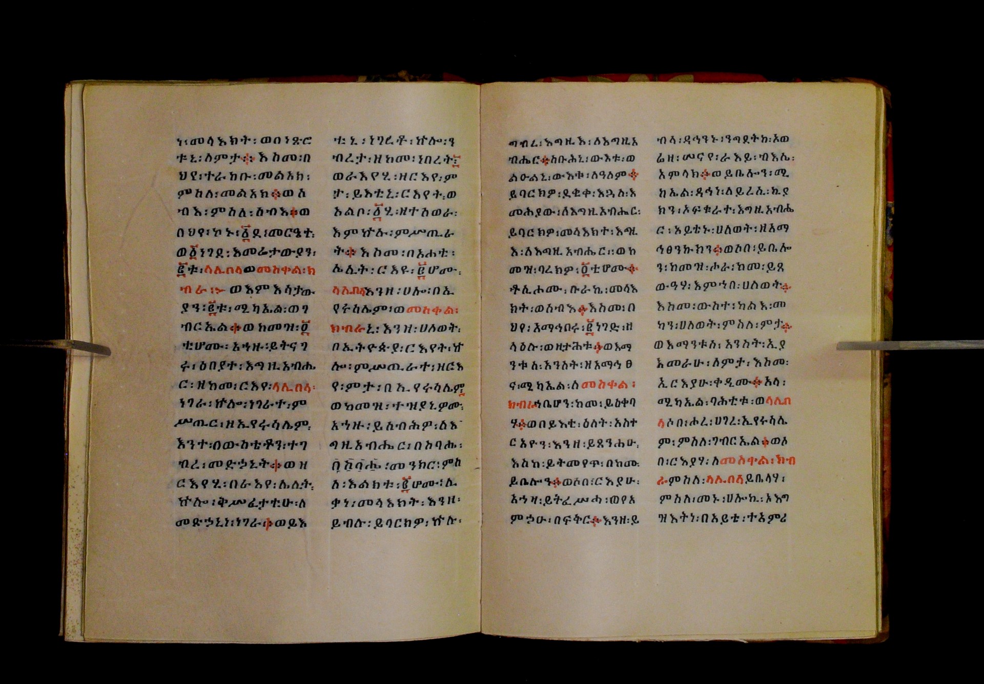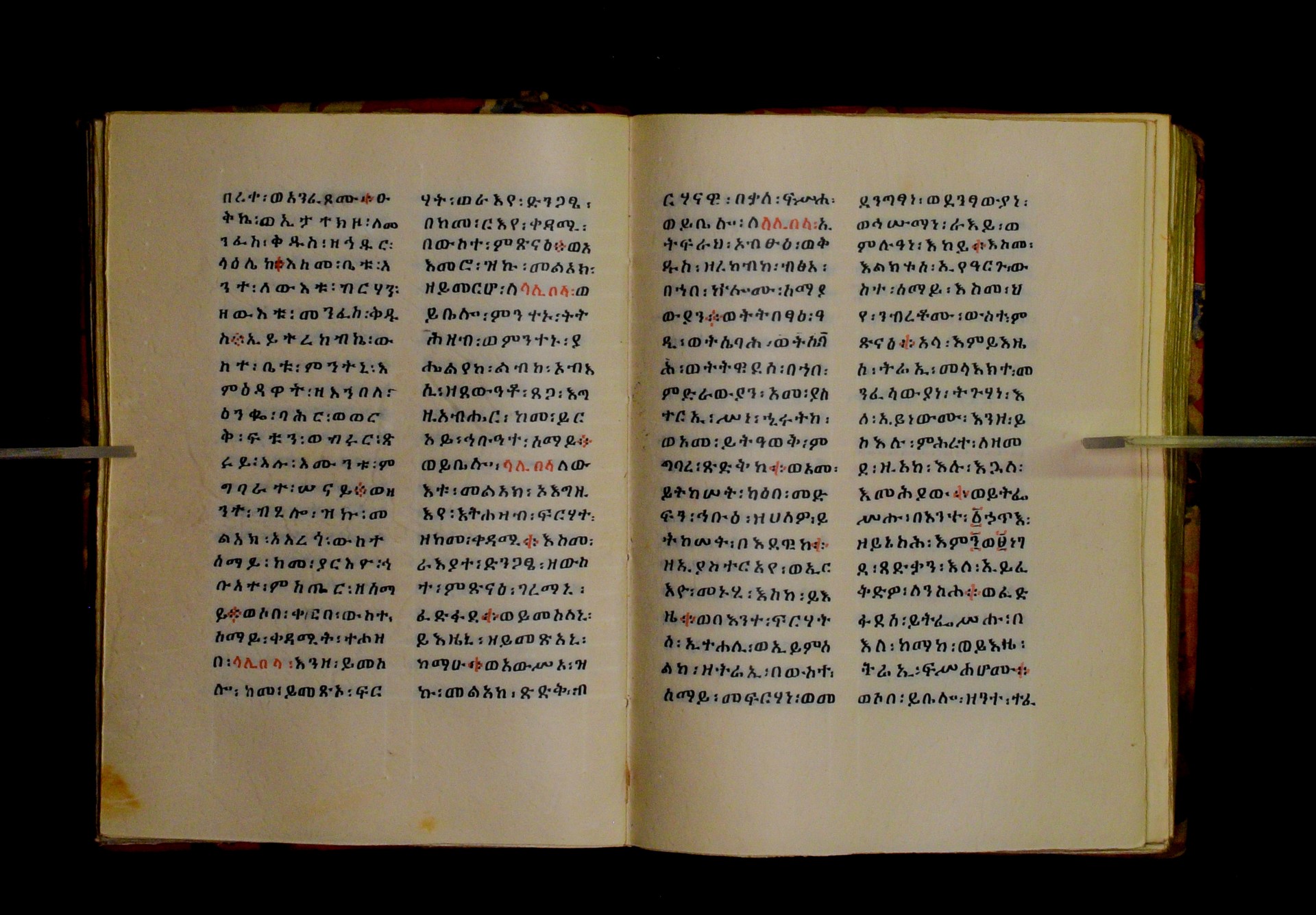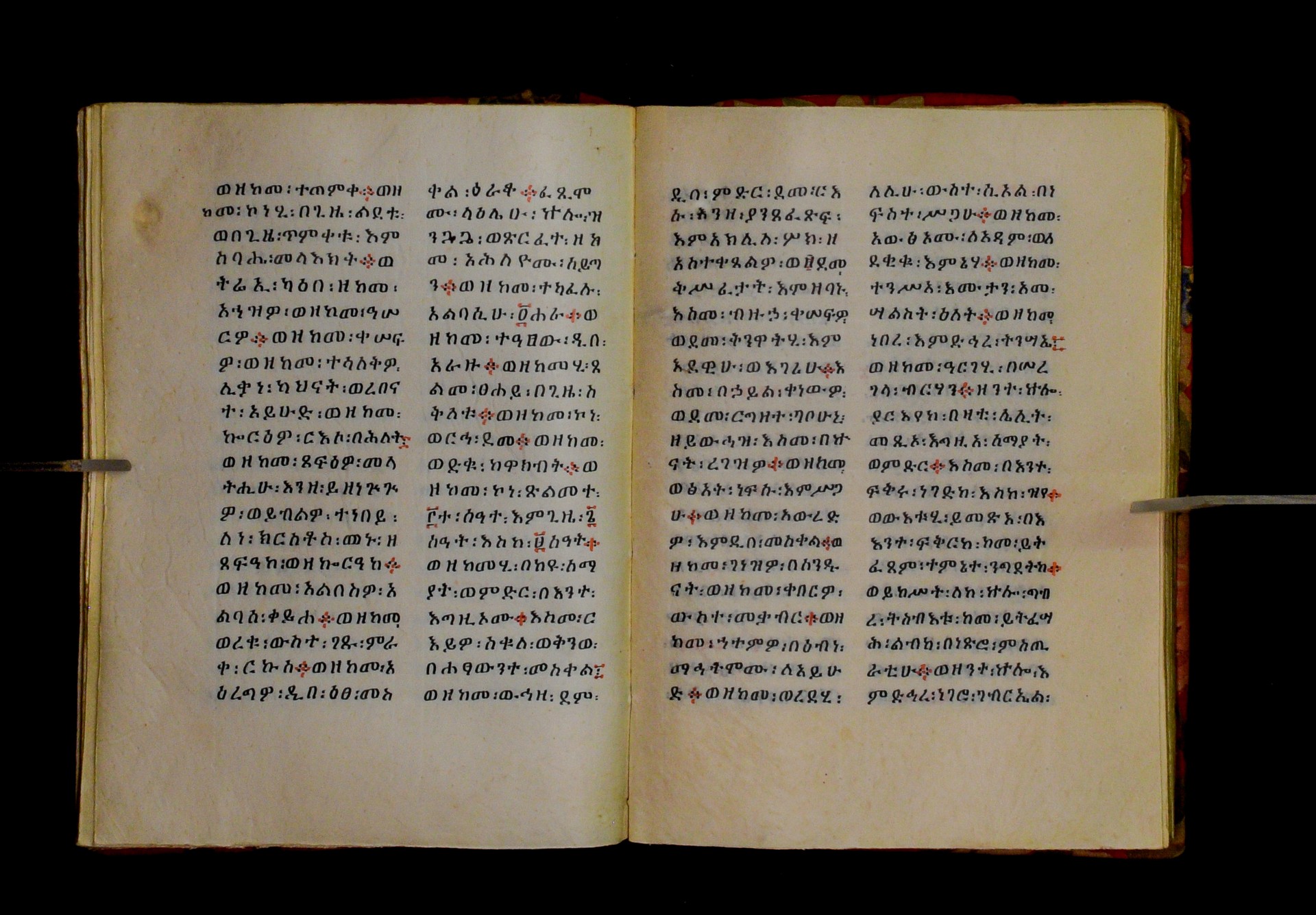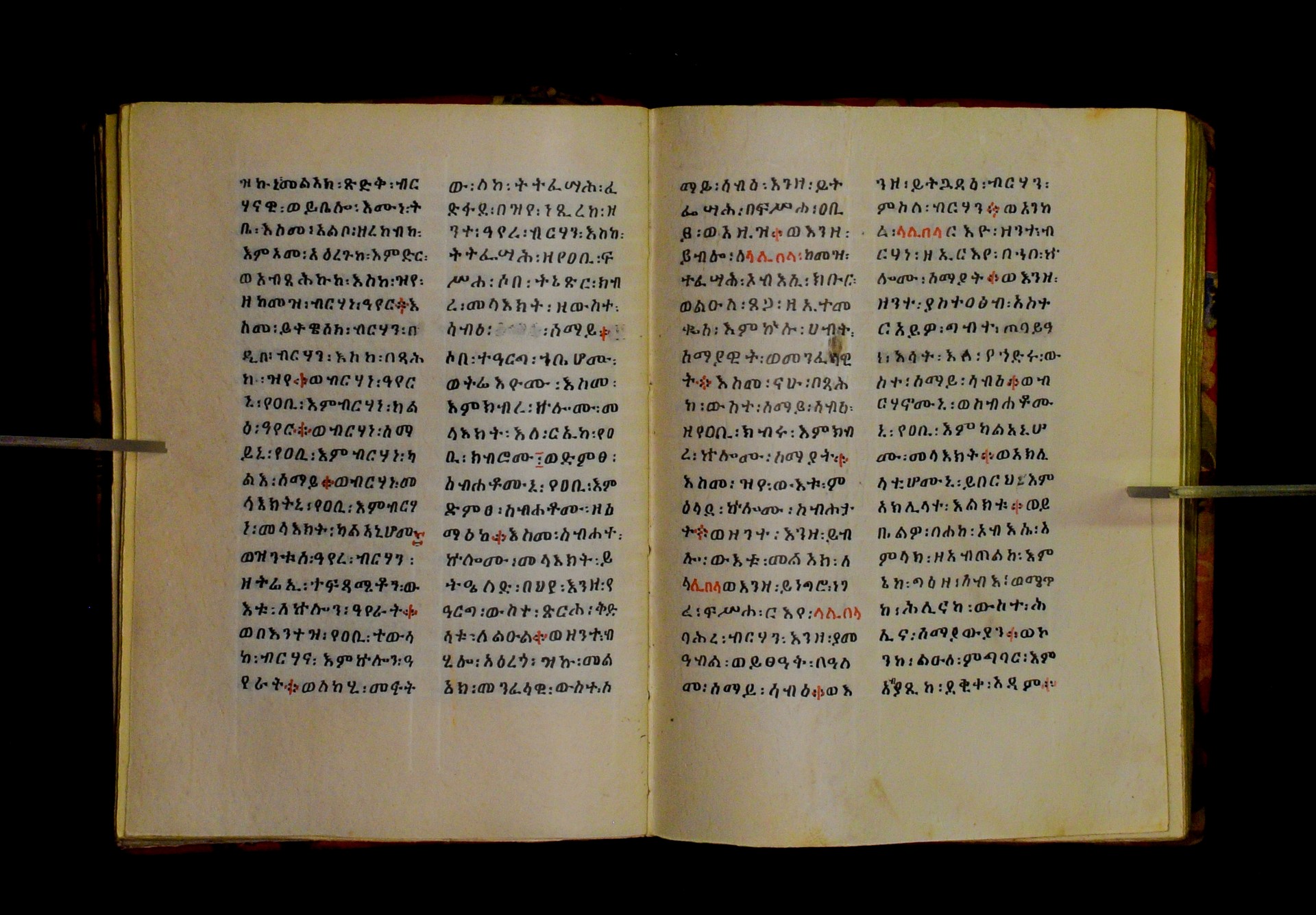 Indicated in black and red ink on the upper margin of the first folio of each quire: ff. 1r (፩,), 11r (፪), 21r (፫), 31r (፬), 41r (፭), 51r (፮), 61r (፯), 71r (፰), 81r (፱), 91r (፲), 101r (፲፩,), 111r (፲፪), 121r (፲፫). |