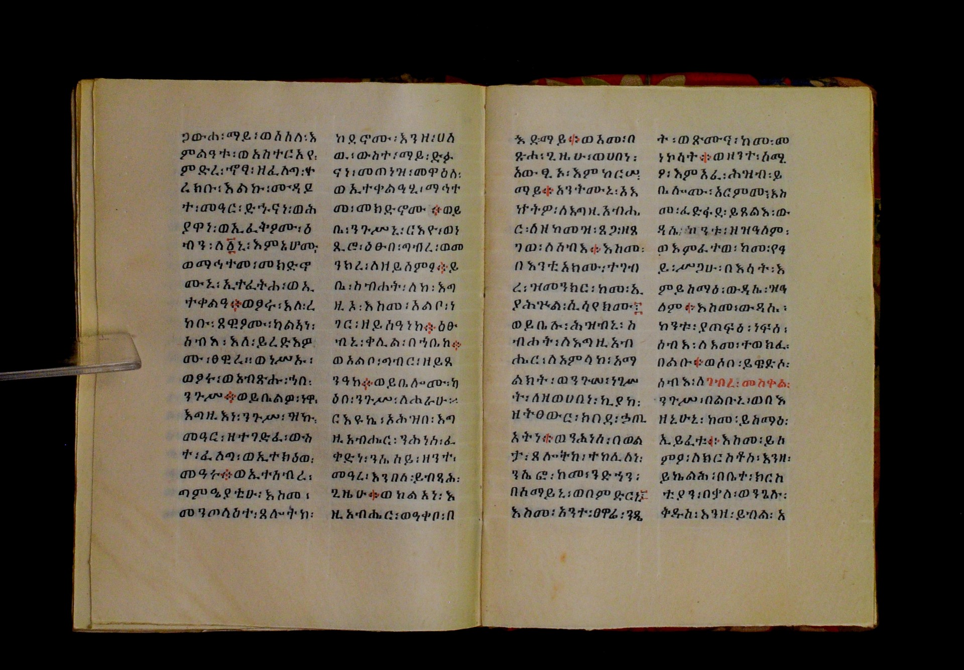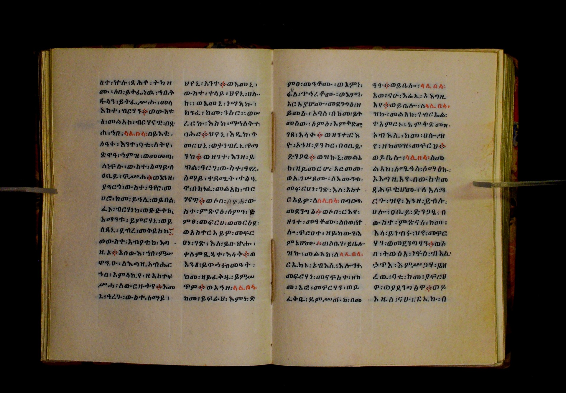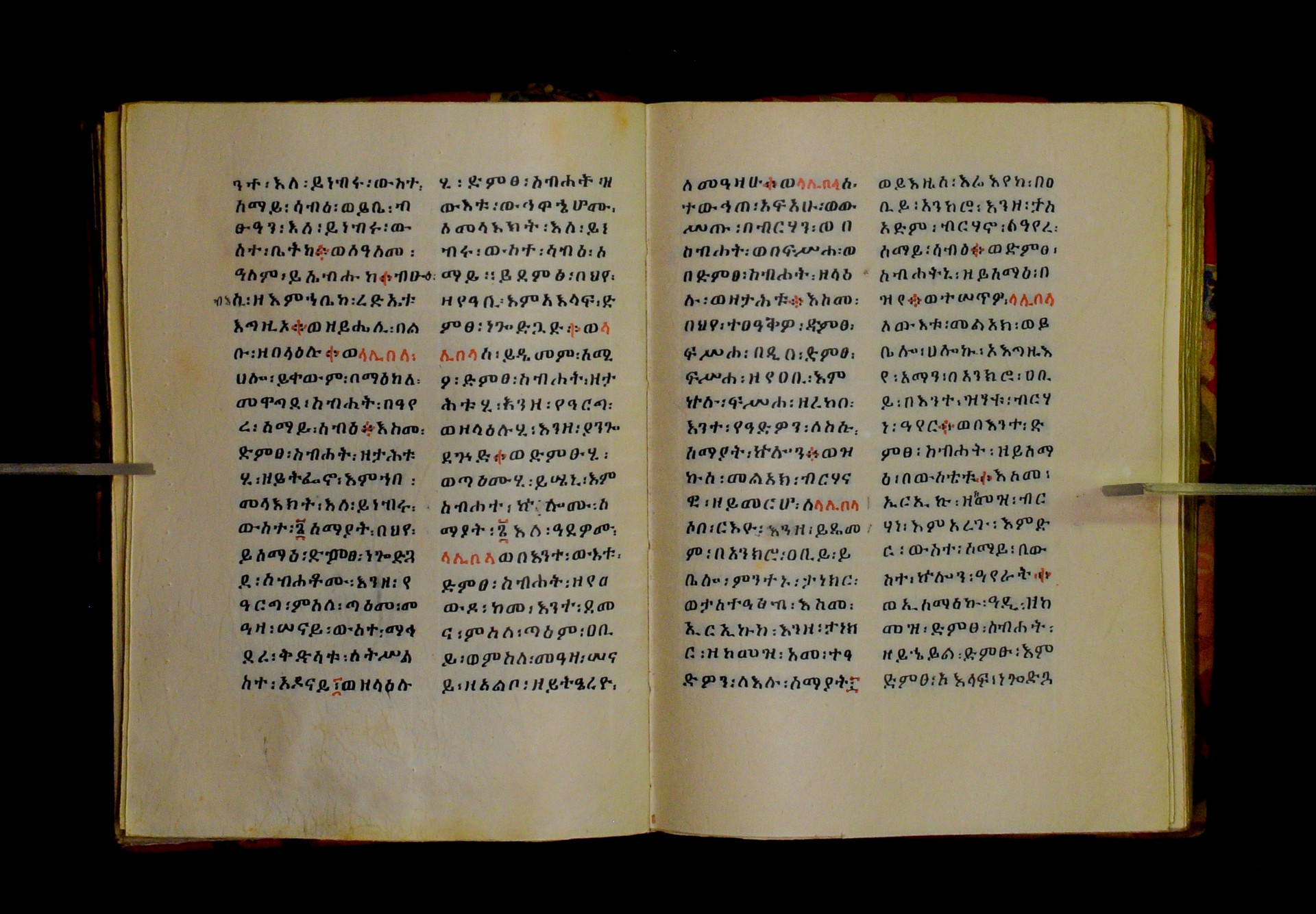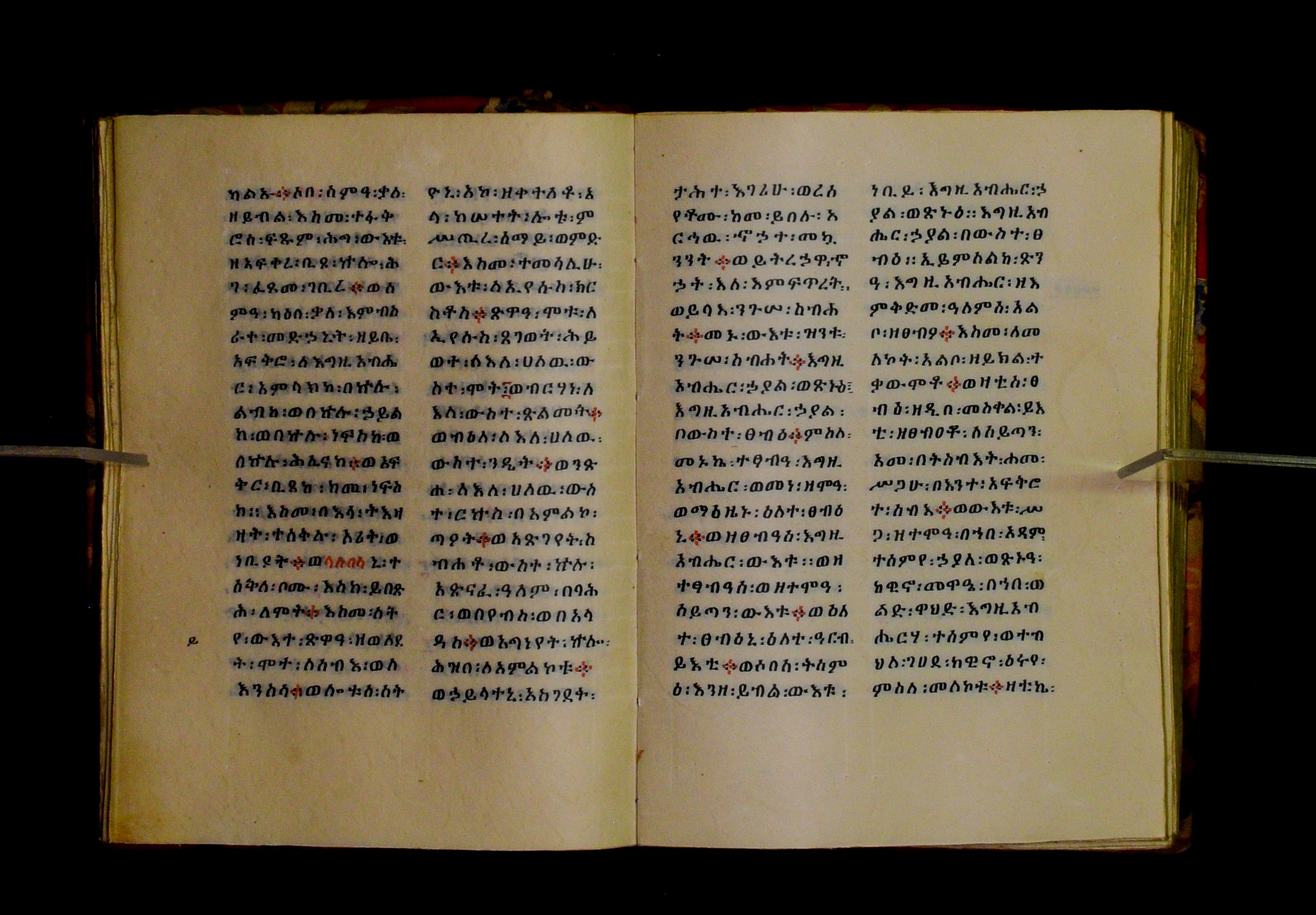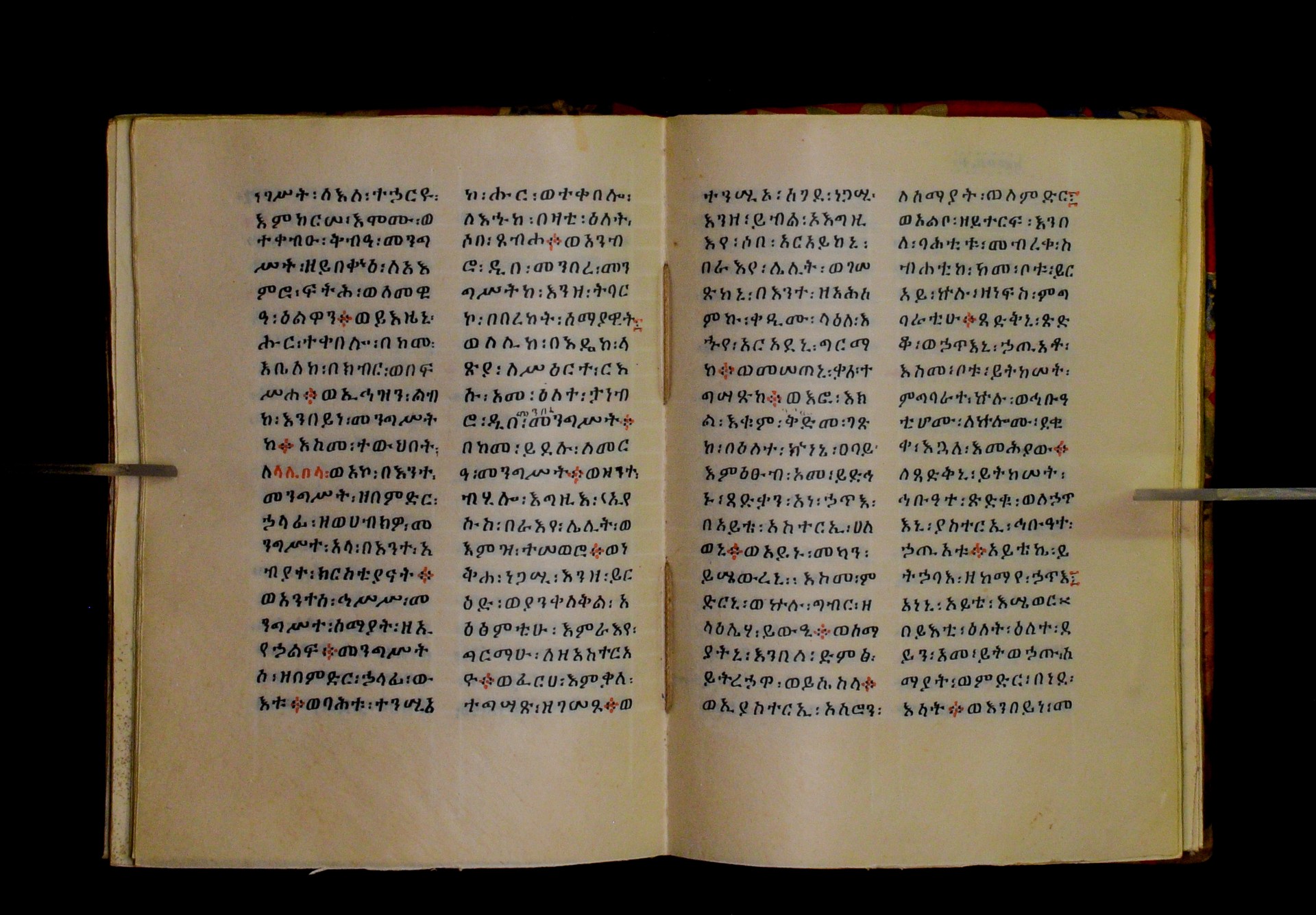 Indicated in black and red ink on the upper margin of the first folio of each quire: ff. 1r (፩,), 11r (፪), 21r (፫), 31r (፬), 41r (፭), 51r (፮), 61r (፯), 71r (፰), 81r (፱), 91r (፲), 101r (፲፩,), 111r (፲፪), 121r (፲፫). |