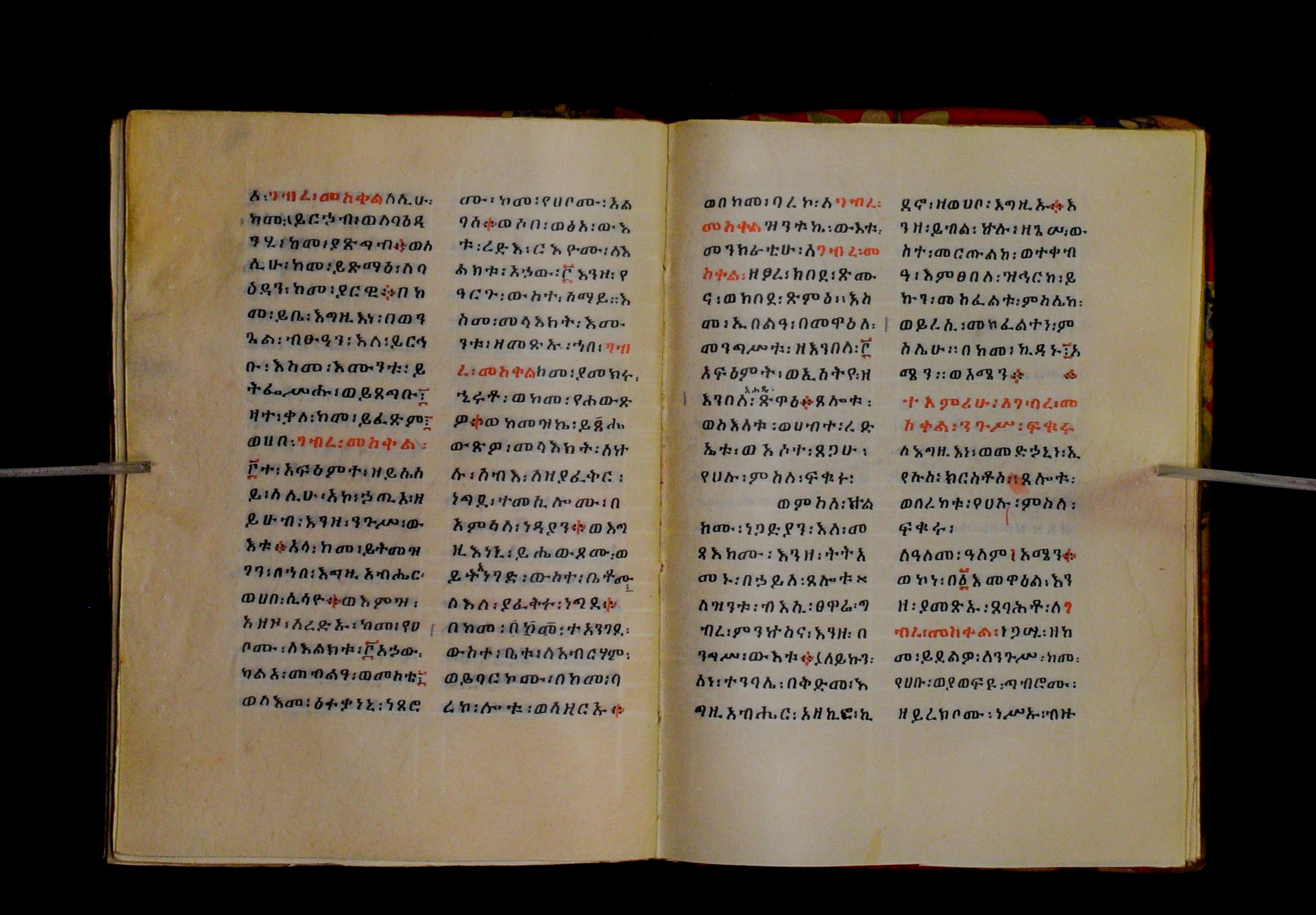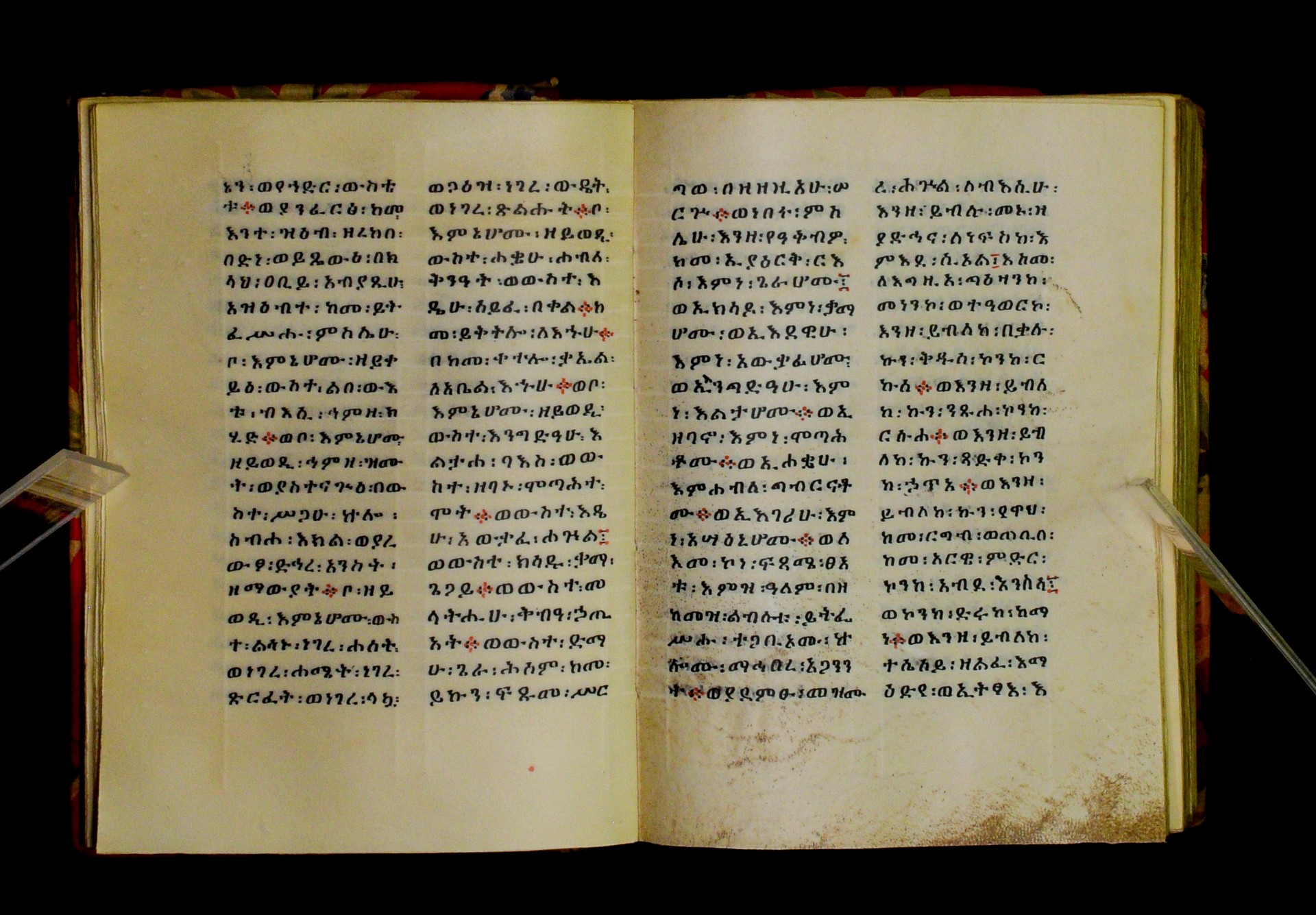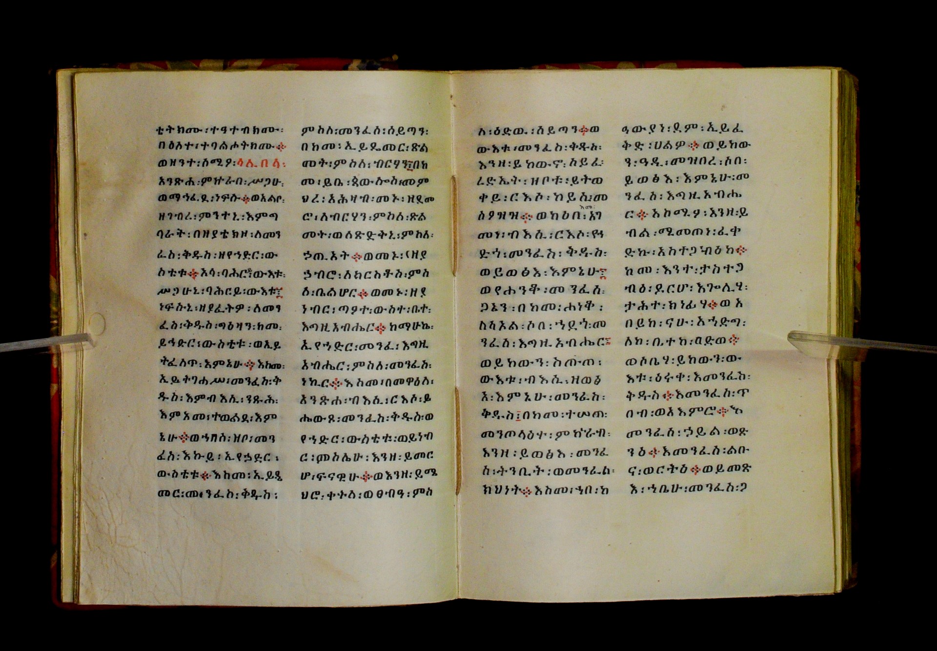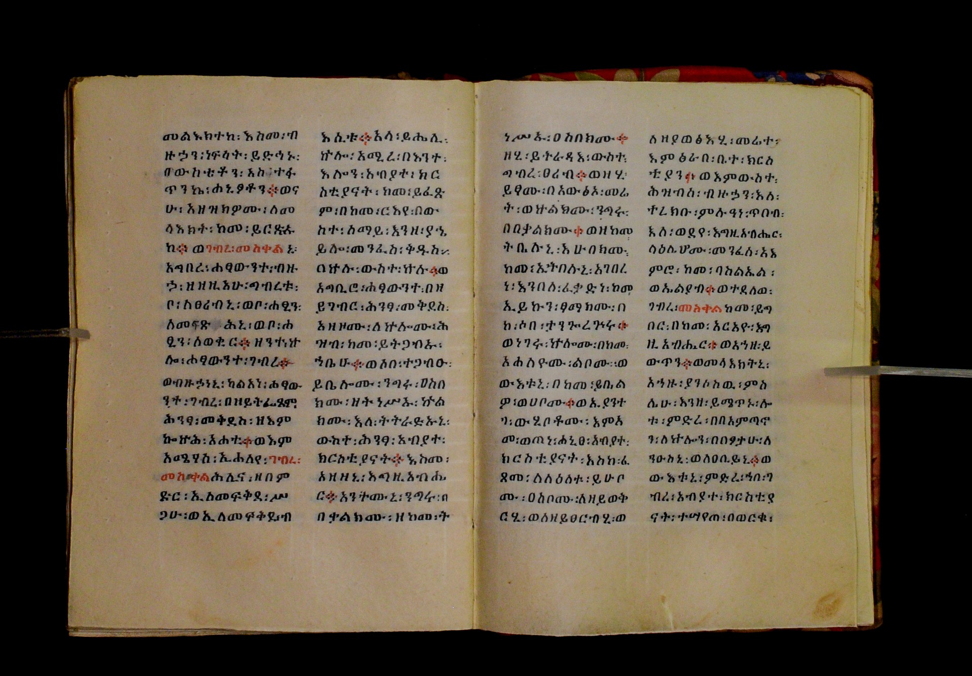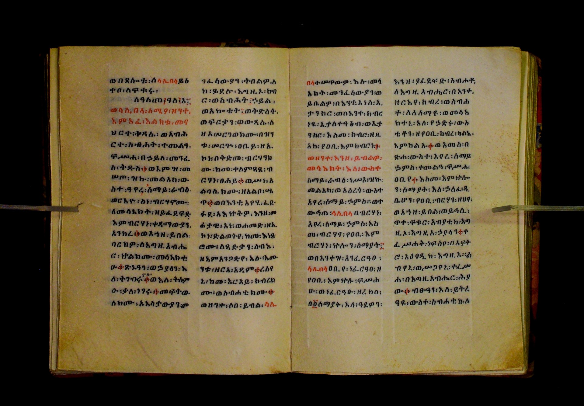 Indicated in black and red ink on the upper margin of the first folio of each quire: ff. 1r (፩,), 11r (፪), 21r (፫), 31r (፬), 41r (፭), 51r (፮), 61r (፯), 71r (፰), 81r (፱), 91r (፲), 101r (፲፩,), 111r (፲፪), 121r (፲፫). |