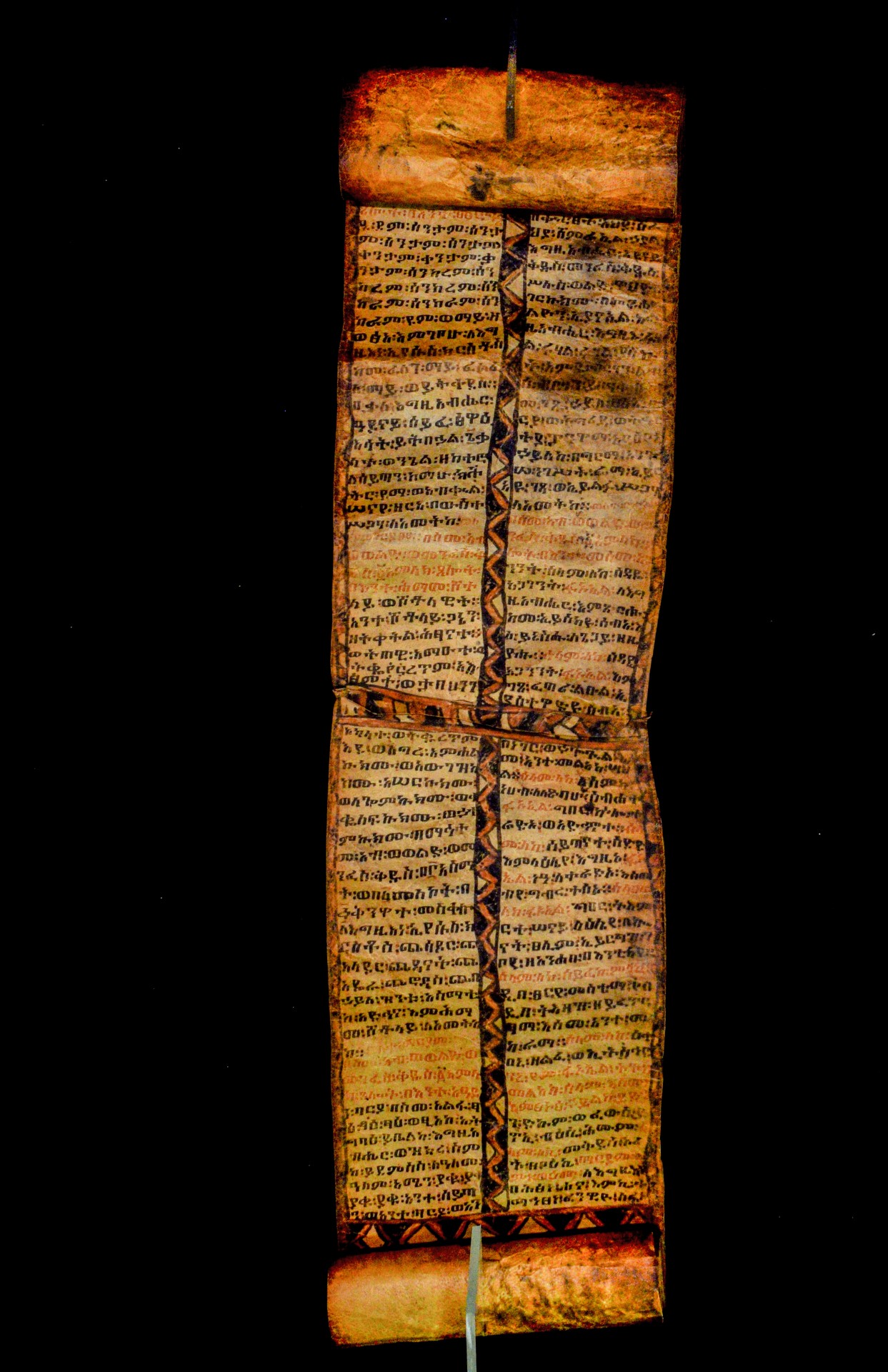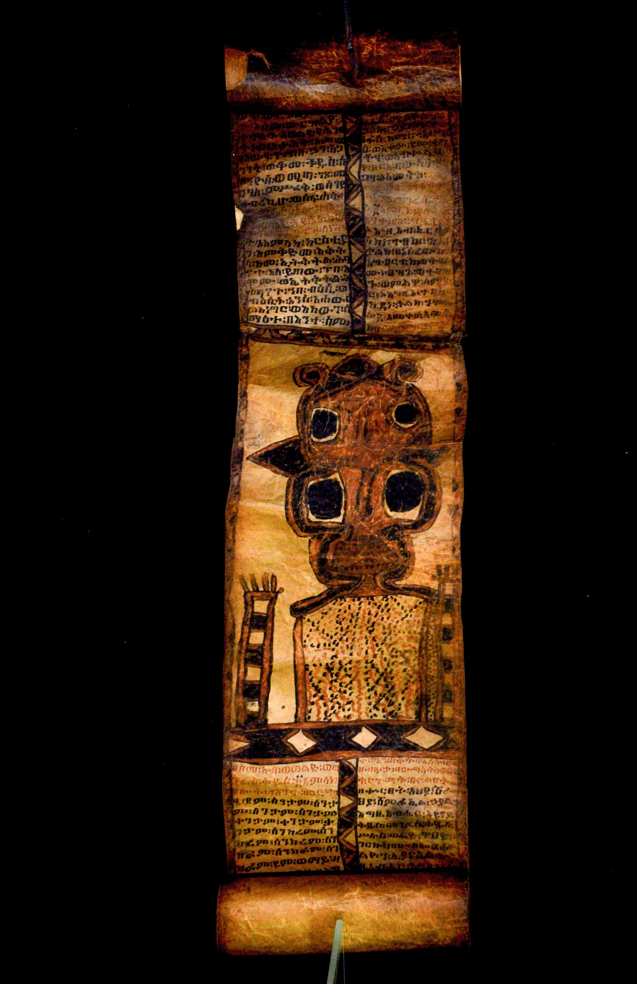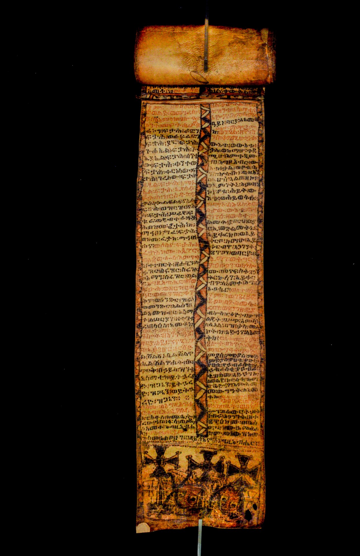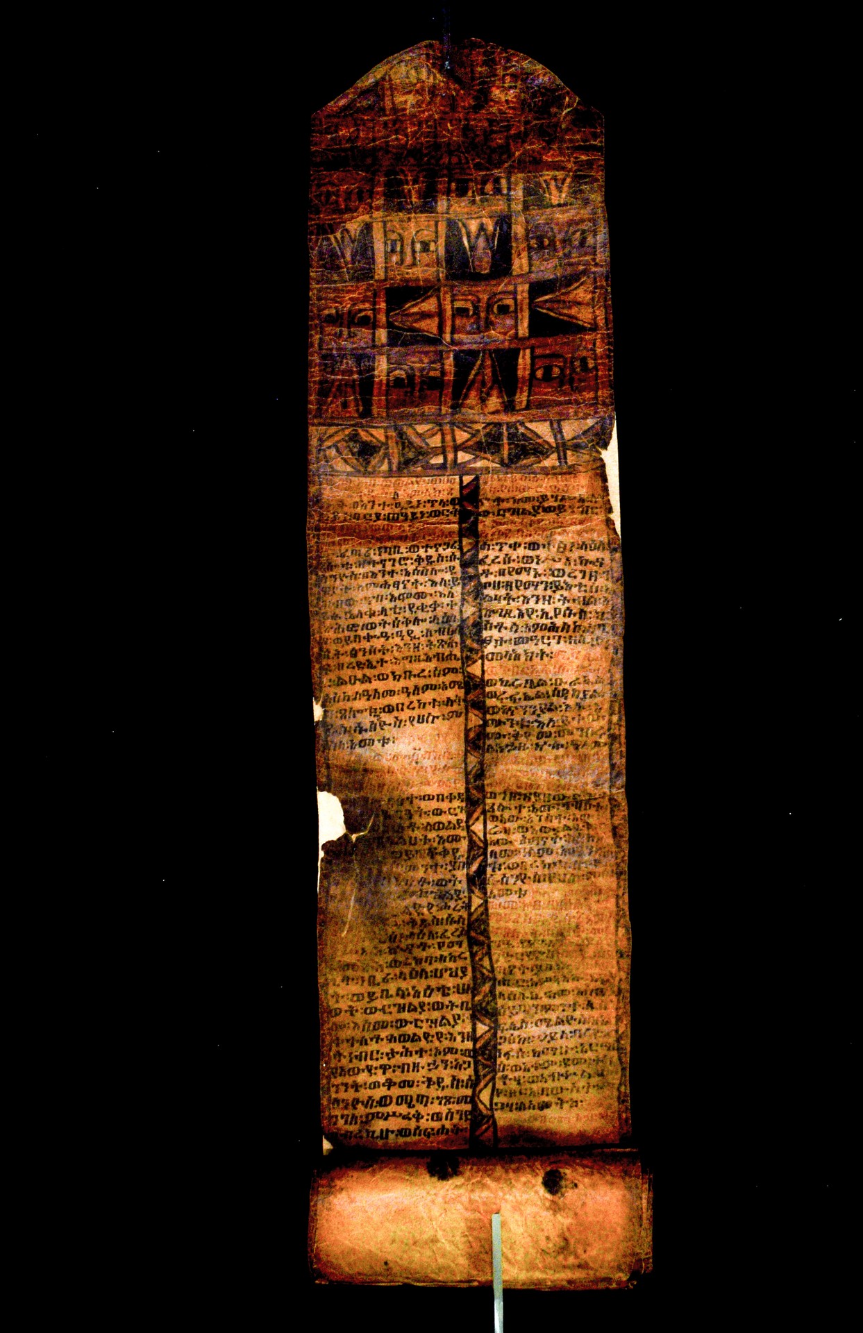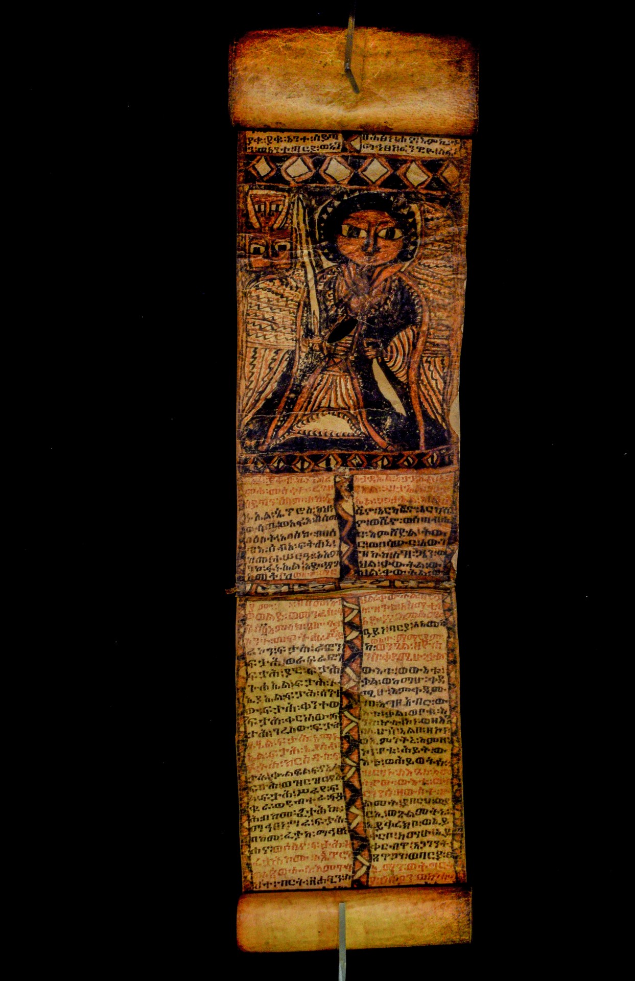 The scroll belonged to a certain Wälättä Maryam, whose name is written in the red ink in all supplication formulas. The scroll was presumably purchased by Mordini in the early 1940s and became part of his private collection in Barga (Lucca). In 1994 the Italian Ministry for Cultural Heritage bought the Mordini collection, which entered the Biblioteca Palatina in Parma (cf. Fiaccadori, G., 1995, ‘I manoscritti etiopici di Antonio Mordini’. Malacoda 57 (1995), 24–27). |