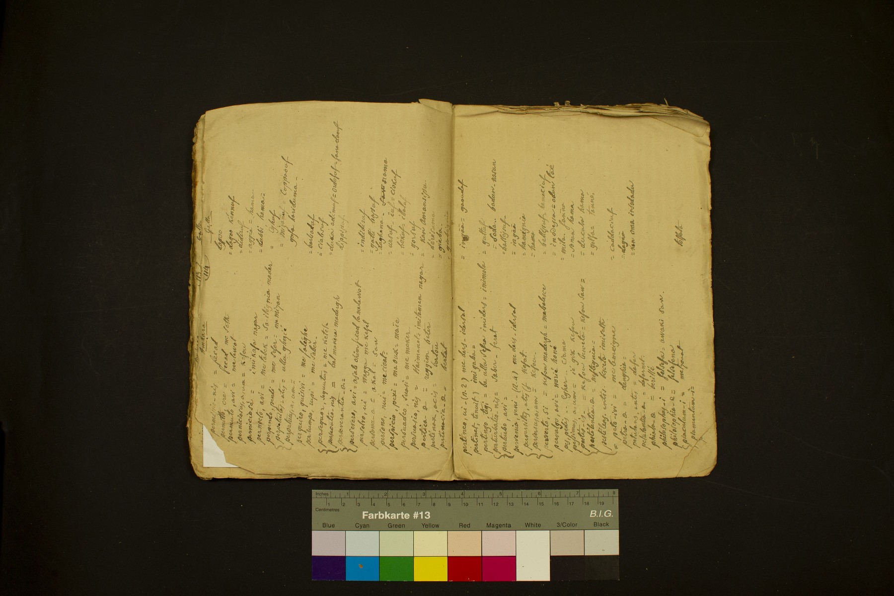 The item also includes two additional loose quires, labelled 1 and 2. Quire 1 is a medium-size paper bifolium. Ff. 1–2 contain a wordlist in an unidentified Ethiopian language written in black ink in Latin script, in all likelihood by Léon des Avanchers. Each entry is accompanied by the respective meaning in Italian. Ff. 3–4 are blank.