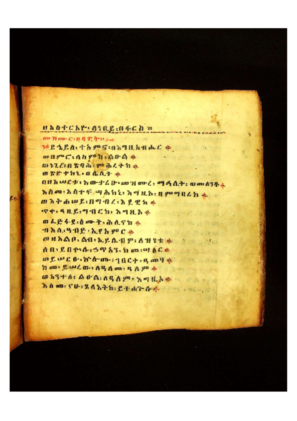 Incipit: ኖኅን፡ ከማየ፡ አይኅ። እስራኤልን፡ ከፈርዖን። ዳዊትን፡ ከሳኦል፡ ከኢሎፍሊ። ኤልያስን፡ ከኤልዛቤል። ሕዝቅያስን፡ ከሰናክሬም።